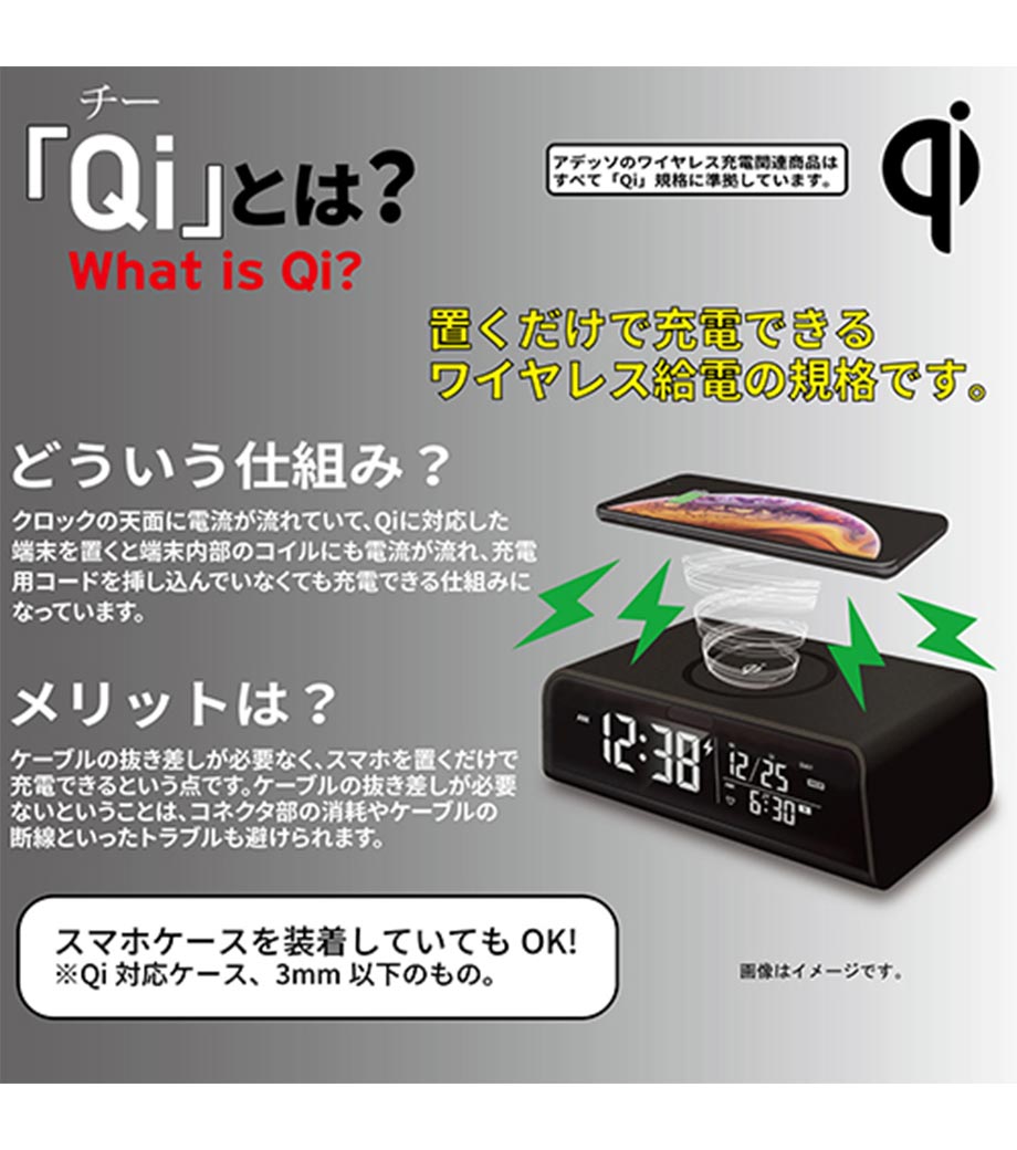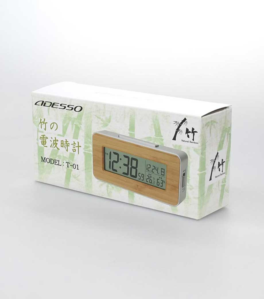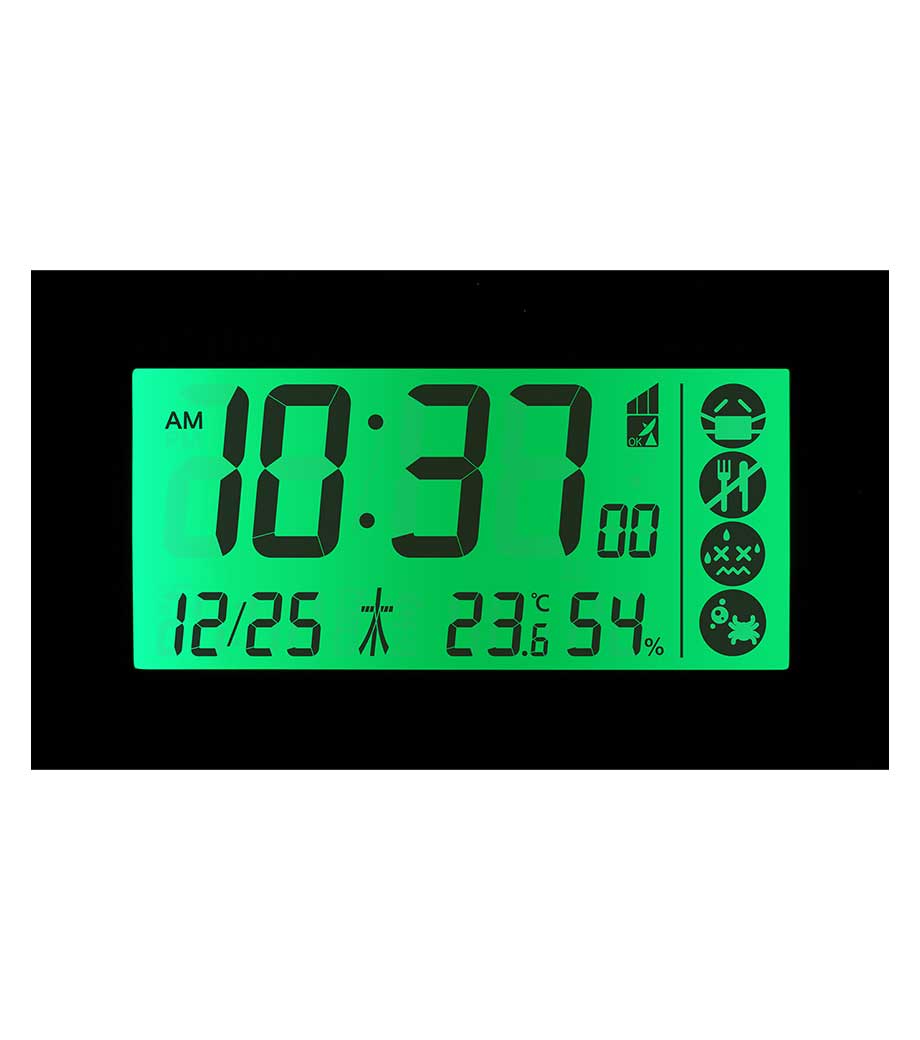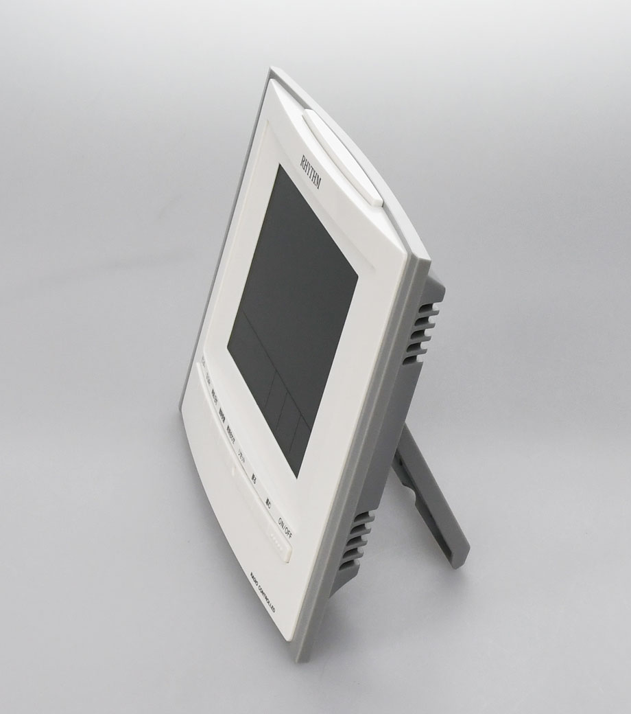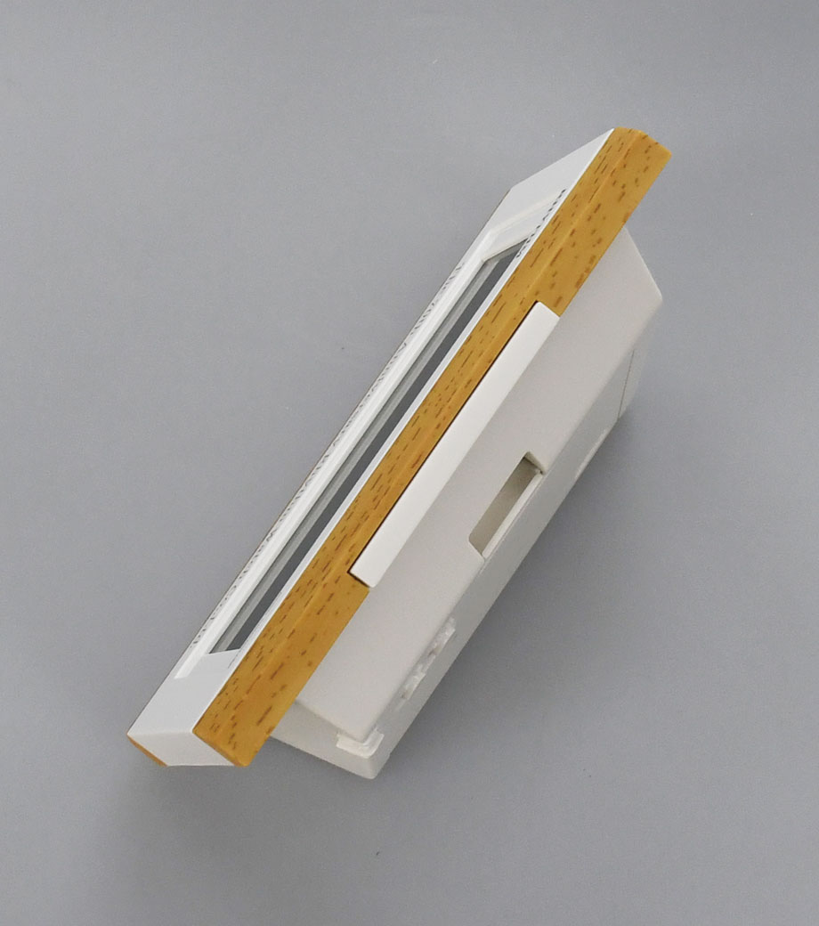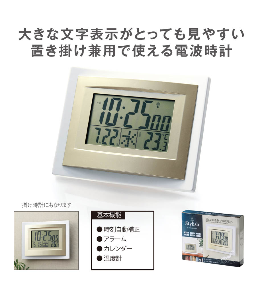 遠くからでも数値がわかりやすいビックサイズの文字表示で、時刻の表示はもちろん日付や曜日、温度がひと目でわかります。