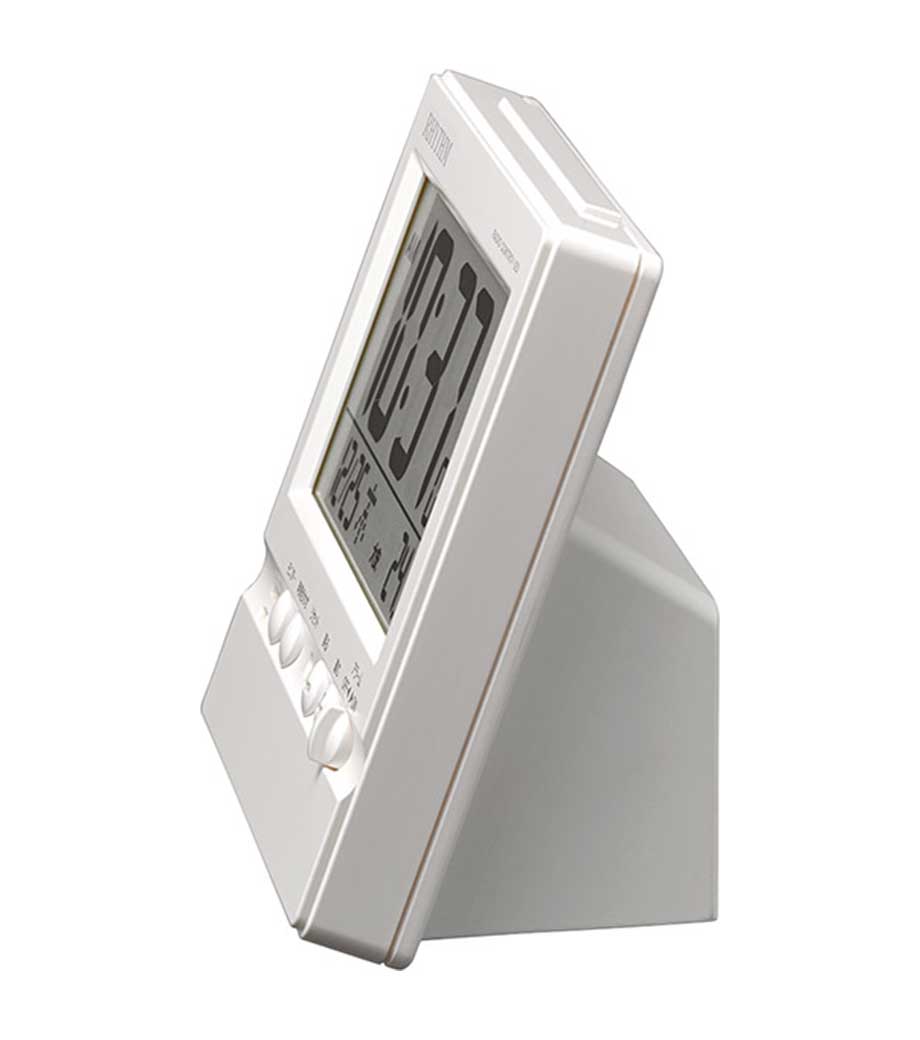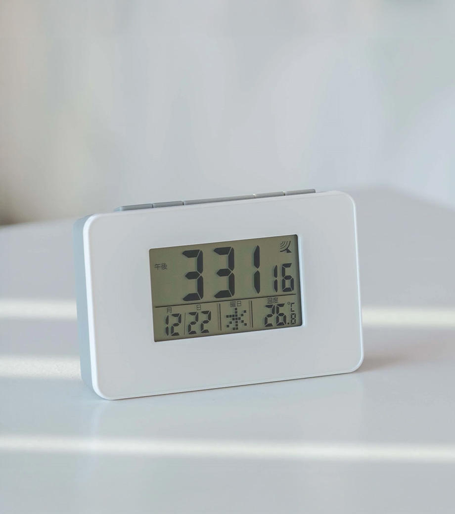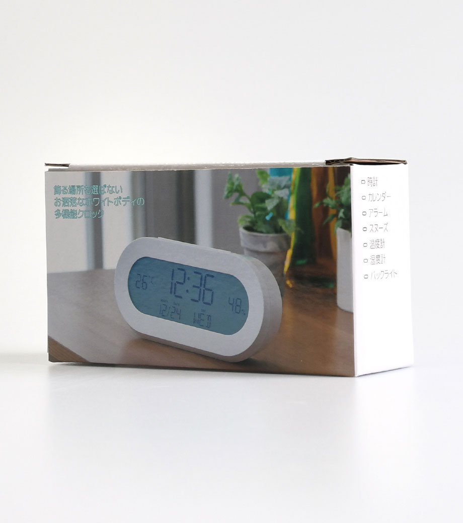 「カレンダークロック」は、100年カレンダー・カウントダウンタイマー・スヌーズ機能付アラーム・温度表示・誕生日のお知らせ・LEDバックライトの機能を備えた卓上時計です。シンプルでスリムなホワイトボディは、どんな空間にもすっきりマッチします。