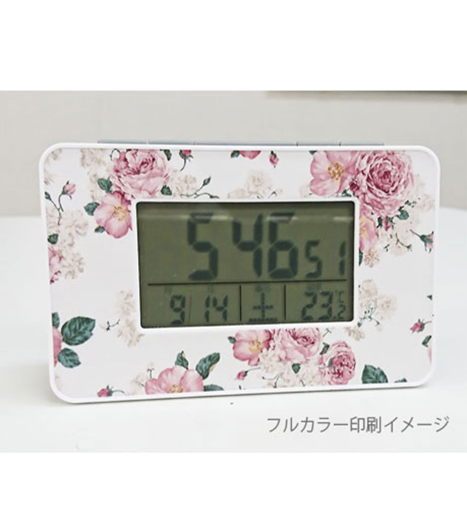 リズム フィットウェーブヴィスタは手のひらサイズで携帯しやすい電波時計です。有名メーカーの時計は周年記念品や卒業記念品として人気!邪魔にならないコンパクトサイズで、もらって嬉しいデジタルクロックです。正面と裏面電池蓋に1色印刷が可能で、ロゴや文字入れができます。
