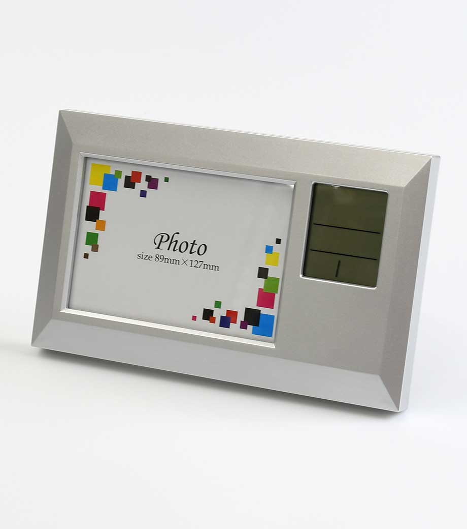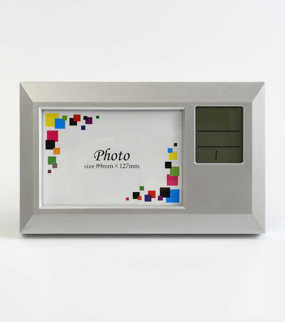 「フォトフレームクロック」は写真を入れてオリジナルの時計にできる記念品にぴったりのアイテム。時刻表示・カレンダー・アラーム・温度計・スヌーズの毎日に必要な機能をしっかり搭載しています。