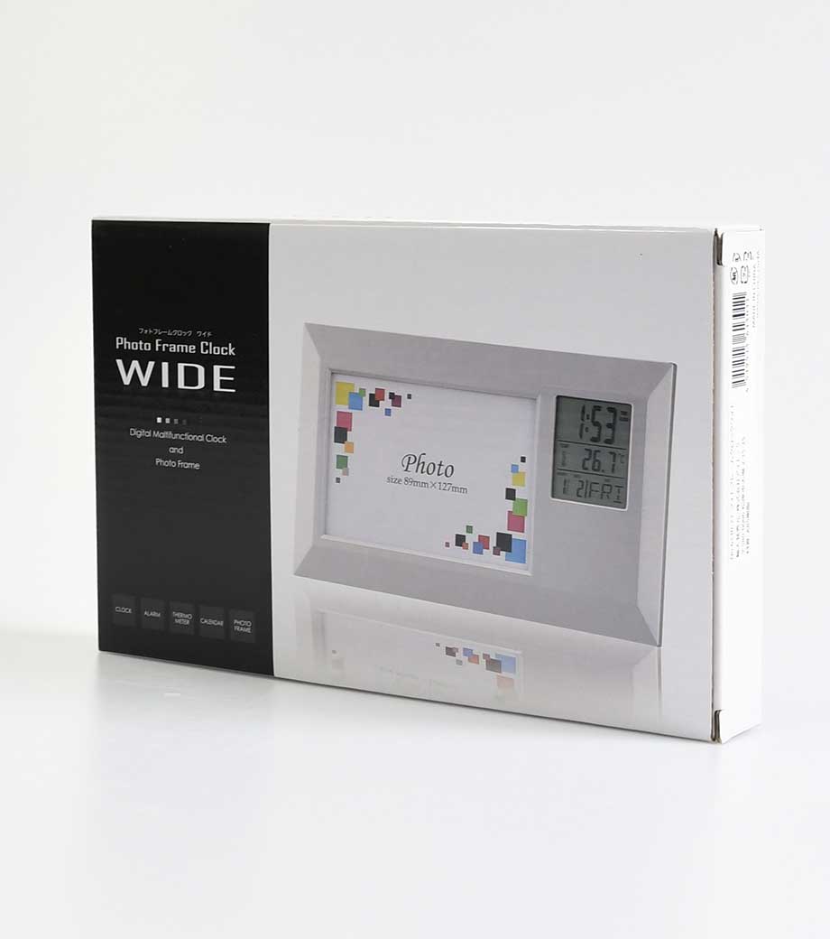 フォトフレームクロックは、時計・カレンダー・フォトフレーム・アラーム・温度計・カウントダウンタイマー・誕生日お知らせアラームが付いた多機能クロック。置く場所を選ばないシンプルなデザインで、フォトフレームはハガキサイズ対応。お気に入りの写真やポストカードを入れて楽しめます。
