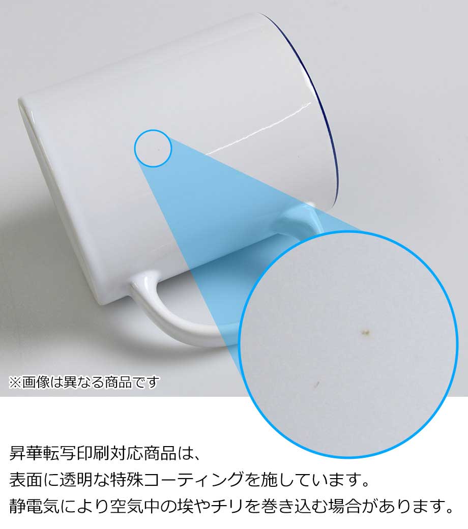 デザインの自由度が高いフルカラー昇華転写印刷に対応!見た目はホーロー、材質は陶器のいいとこどりのマグカップです。写真やイラストをプリントできるので卒園記念品やキャラクター・アーティストグッズ制作におすすめ。レトロ可愛いオリジナルノベルティに仕上がりますよ。