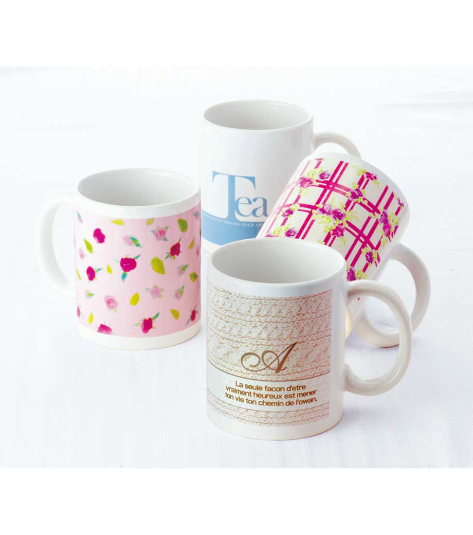 スタイリッシュマグカップはフルカラー昇華転写印刷ができる陶器製マグカップ。明るいホワイトにデザインが映えます。容量は使いやすい約350mlで安価も魅力。記念品や同人グッズ制作にピッタリです。