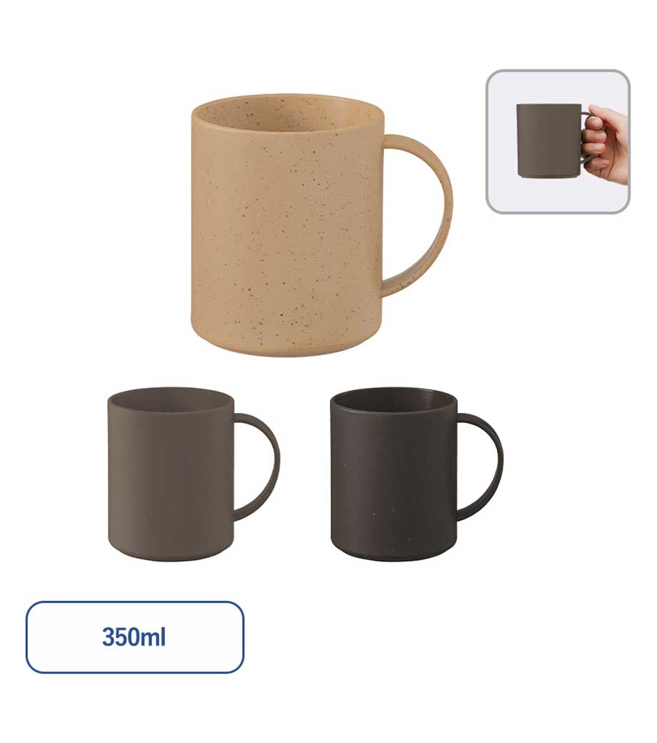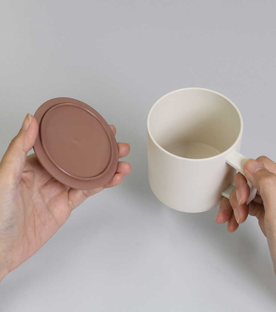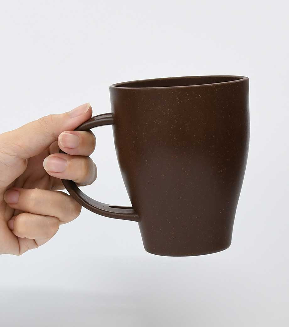 シンプルマグカップ350ml(コーヒー配合タイプ)はコーヒーを抽出した後に残る豆かすを再利用したマグカップ。コーヒーを連想するブラック・ブラウン・ベージュの3色をご用意しました。ブレイクタイムにちょうどいい容量約350ml。コンビニコーヒーのMサイズ程度の容量です。軽量で割れる心配がなくリビングではもちろん、キャンプなど屋外でも安心して使えます。