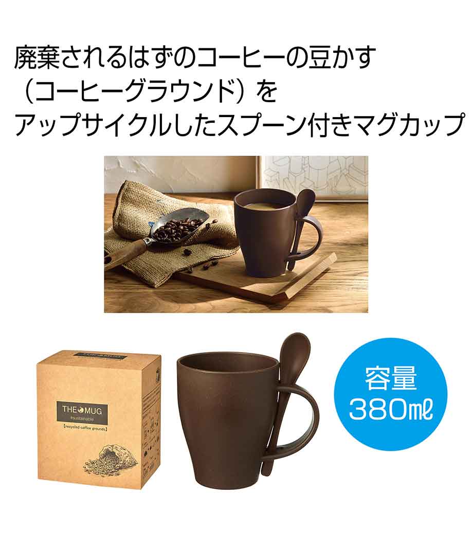 ザ・マグ(コーヒーグラウンド配合)#sustainableは、コーヒーを抽出した後に残る本来であれば廃棄されるはずの豆かす(コーヒーグラウンド)を使用した、アップサイクルのマグカップ。SDGsや環境を意識したノベルティにおすすめです。