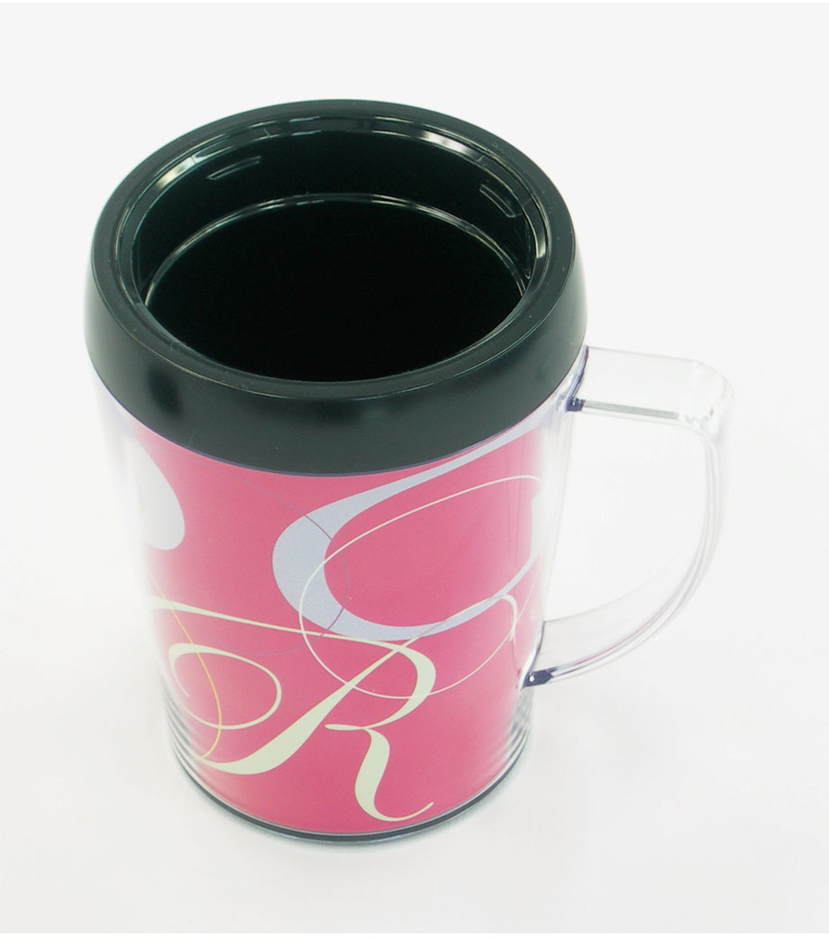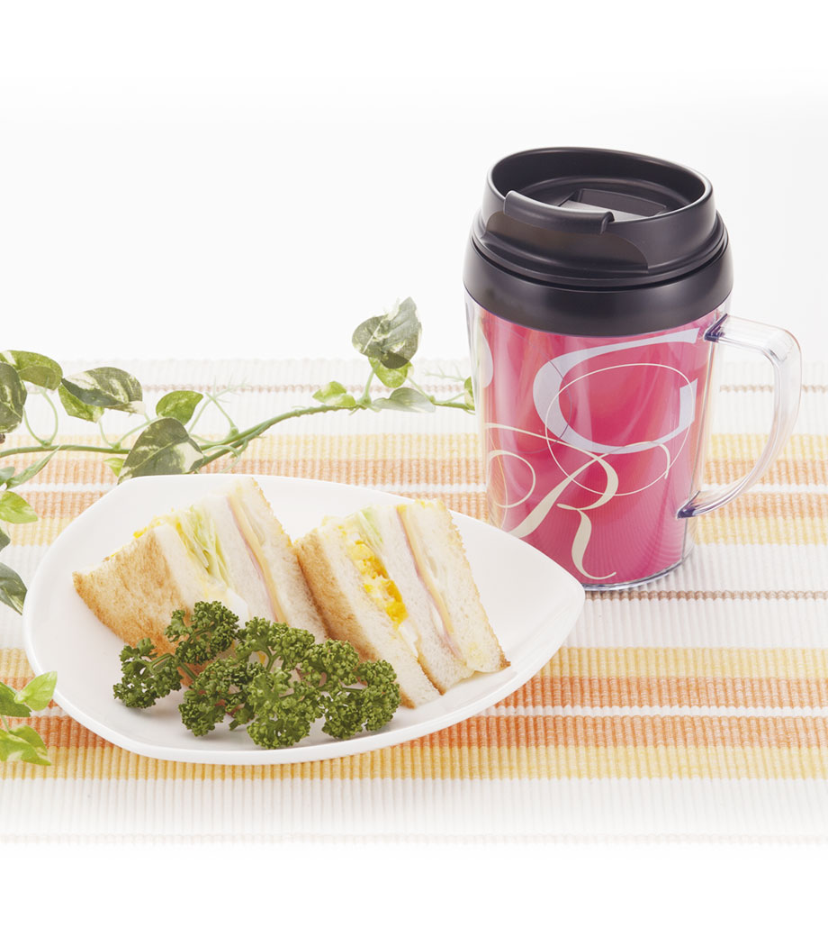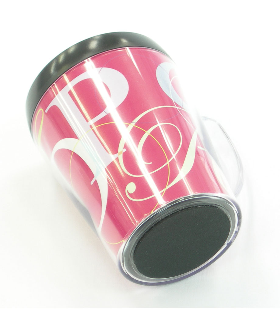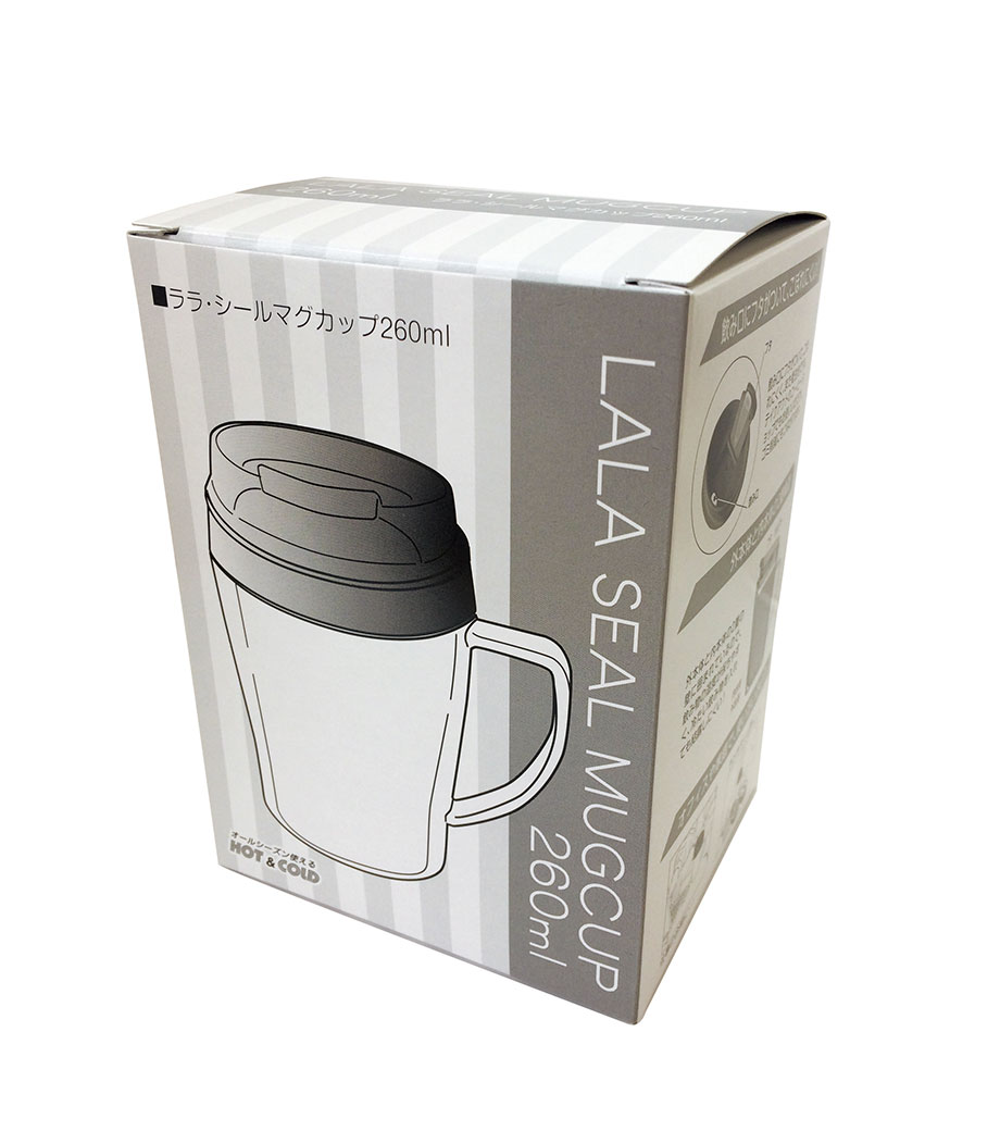 底面の滑り止めや、保冷温効果のある2重構造など、細かい所までこだわっています。そのままでもおしゃれな形状なので台紙を入れただけで簡単にクオリティの高いアイテムが仕上がります。取っ手の中心と中台紙のつなぎ目はずれる場合があるため、オリジナル台紙を作成する際は、中心が分かりにくいリピート柄がおすすめです。企業ロゴを入れてキャンペーン等のPRや、写真を入れた記念品にもおすすめです。