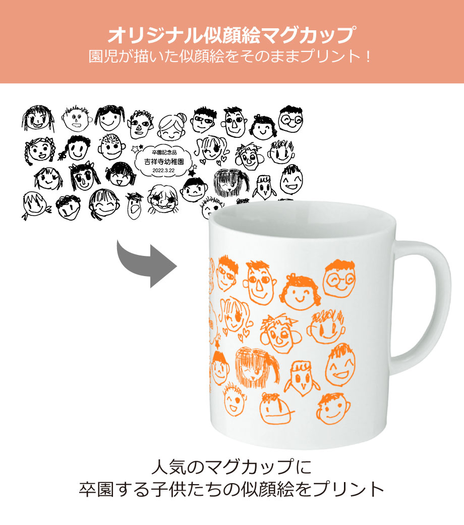 【卒園記念品】 オリジナル似顔絵マグカップは商品代と版代、印刷代が全部コミコミ価格!卒園記念品で大人気の似顔絵マグカップが簡単に作成できます。