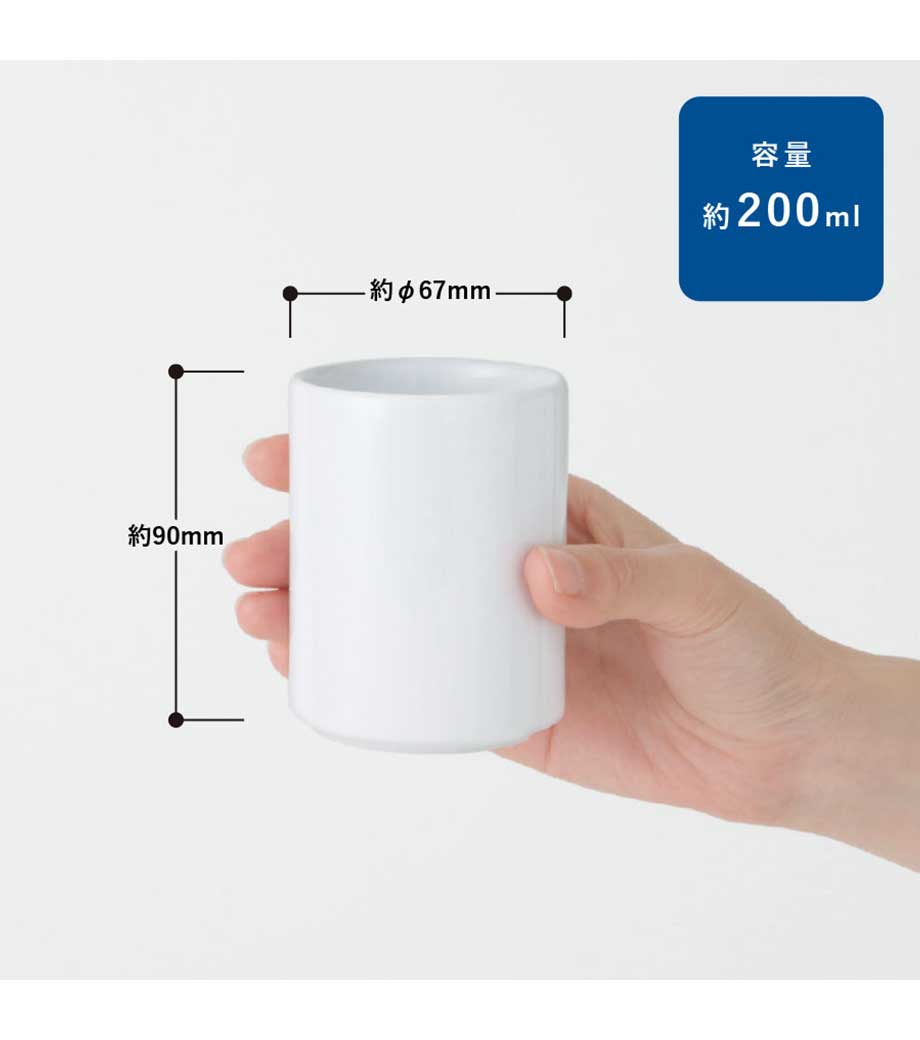サイズは小ぶりな約200ml容量。日本人に古くから馴染みのある湯呑はインバウンド需要も期待できます。白箱に入れてお届けします。