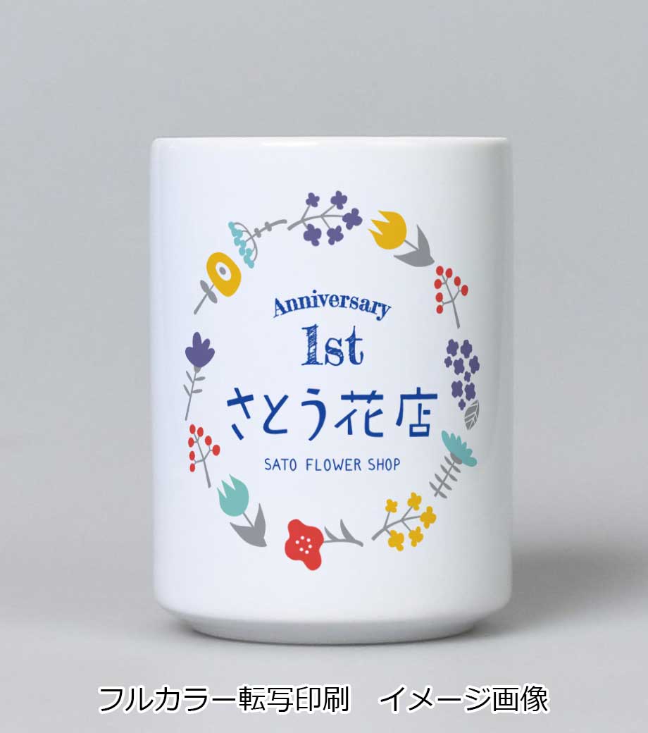 湯呑(M)はぐるっと大きく印刷でき、インパクト大なグッズを製作できます。フルカラー印刷なら写真やイラストもカラフルに再現可能!ご当地アイテムやイベントグッズなどオリジナルグッズの作成におすすめです。1色印刷にも対応しているので、デザインに合わせて印刷方法を選べます。