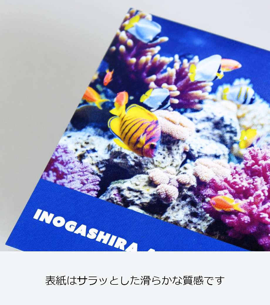 表紙の紙質は一般的なポスターなどに使われている半光沢紙。光の反射を抑えた仕上がりでインクの発色に関しては全体的に少し沈んだようなイメージになります。運動会や球技大会、サッカーチームなどのリーグ戦での参加プレゼント、来場者への記念品に人気です。