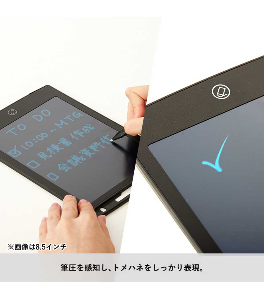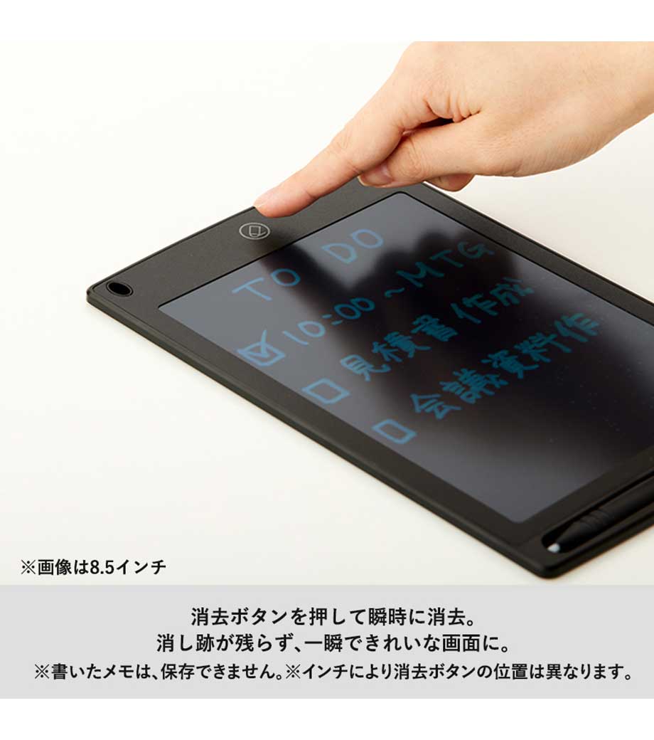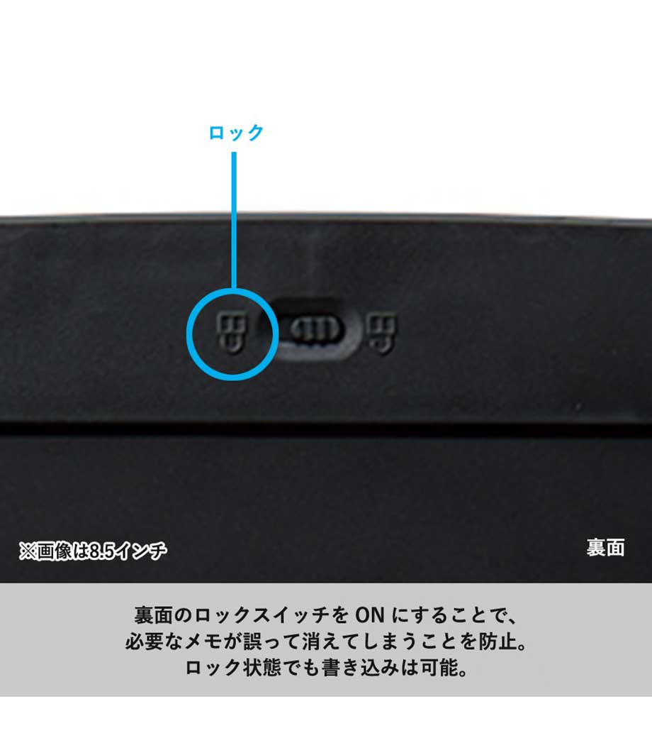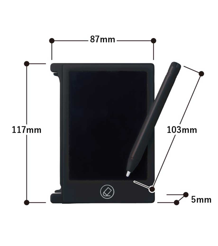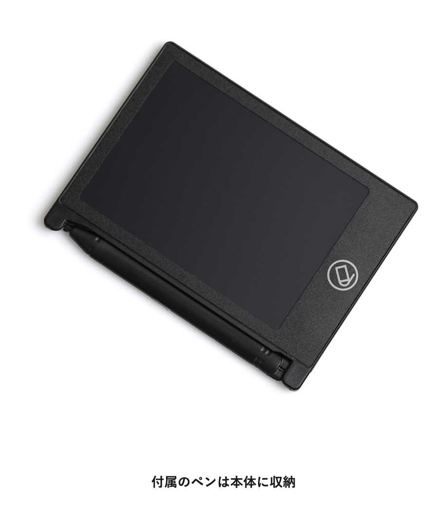 電子メモ 4.5インチは、付属のペンで繰り返し書き込め、紙ごみの削減に繋がるエコなメモ帳です。コンパクトなポケットサイズは携帯に便利。出先や急な対応時にさっと出してすぐに書き留めることができます。書いたメモはパッド下部の消しゴムマークを押せば、瞬時に消せます。また、裏面のロックボタンをスライドすると、残したいメモや文章をキープすることができる優れもの。ちょっとした手書きメモに最適です。