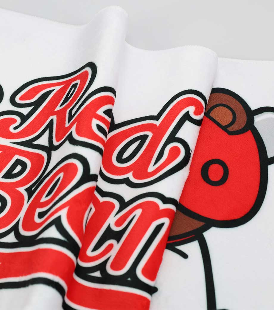 表面はなめらかさが特徴のラビットタッチ、裏面は吸水性のあるコットン素材を使用。しっかり厚みのある特厚タイプです。表示価格は印刷代込みの格安価格!フルカラーのデザインも1色のデザインも同価格でご対応。1枚からの小ロットでご注文いただけます。
