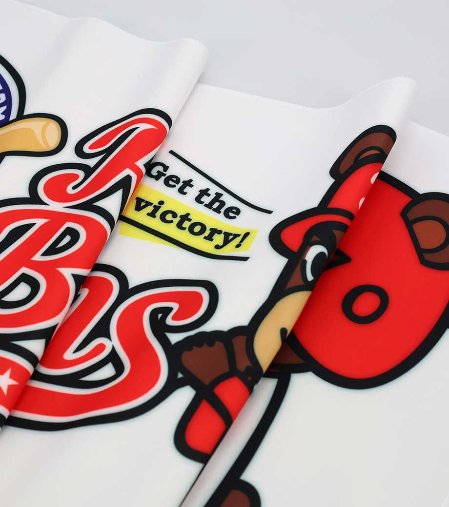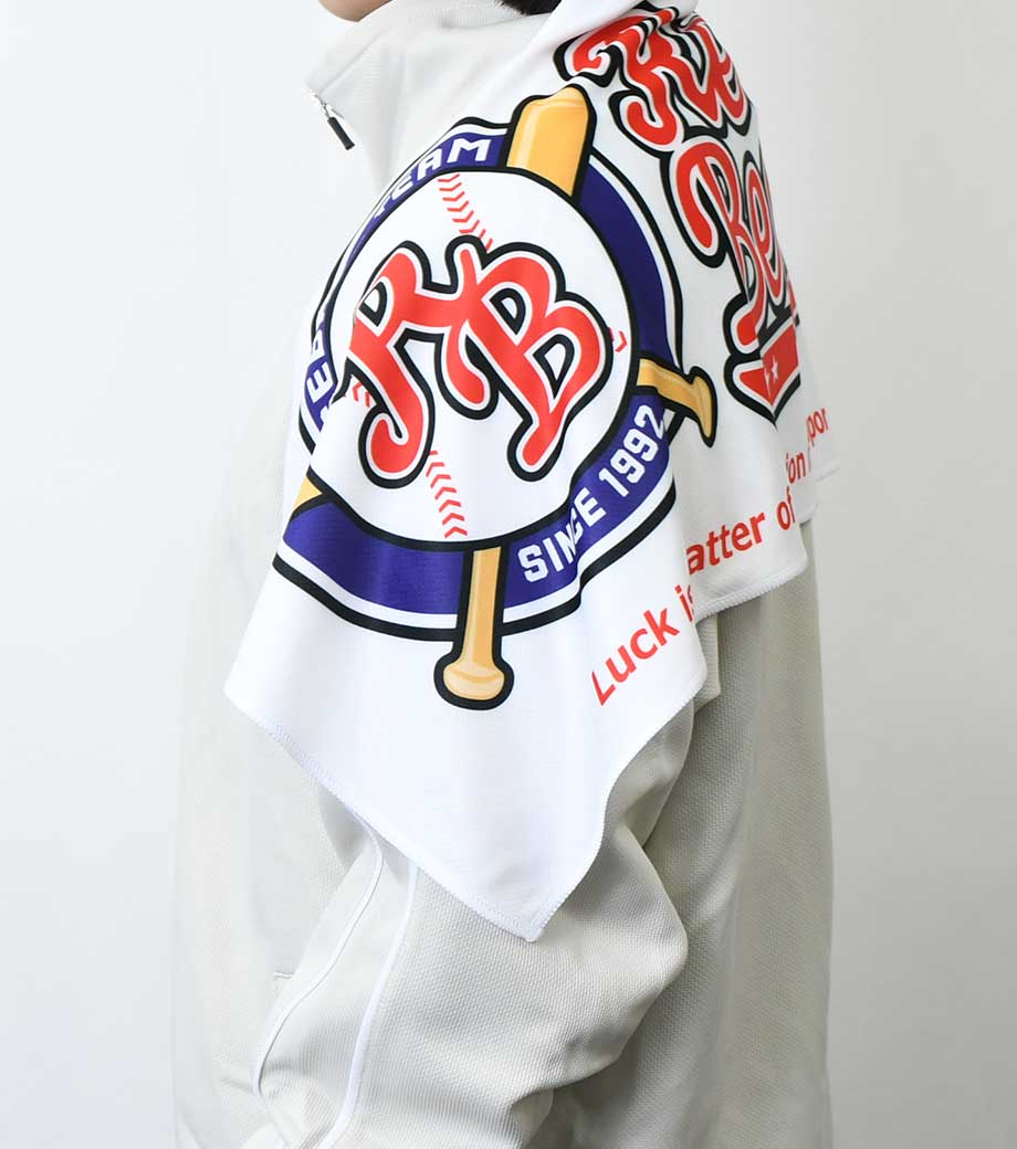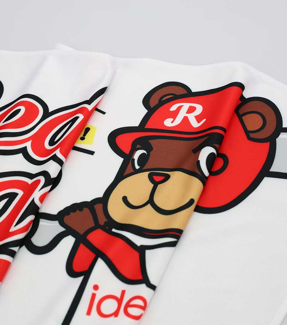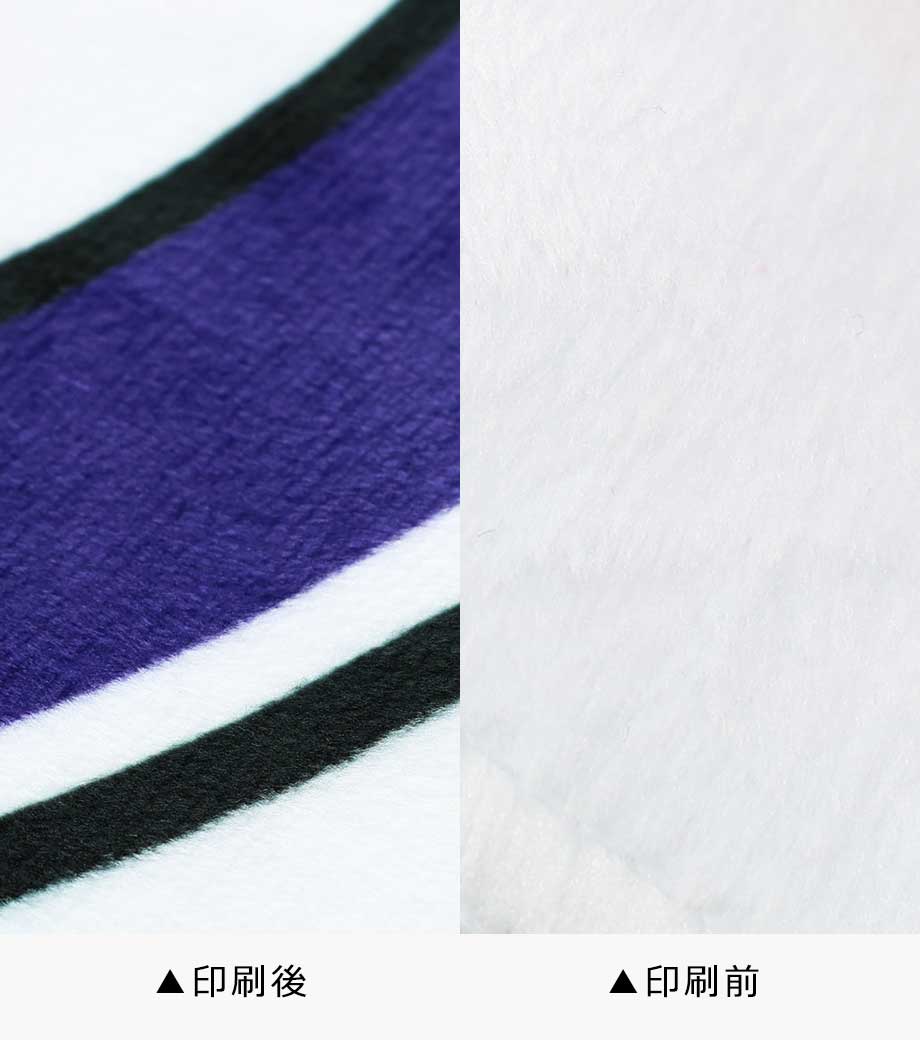 肩に掛けたり首に巻いたり、応援グッズとして人気のマフラータオル。写真やグラデーションなど複雑なデータを端まで綺麗にプリントできます。高級感のある特厚タイプは表面がなめらかな質感のラビットタッチ。裏面は吸水性のあるコットン素材を使用しているので実用性も抜群です。