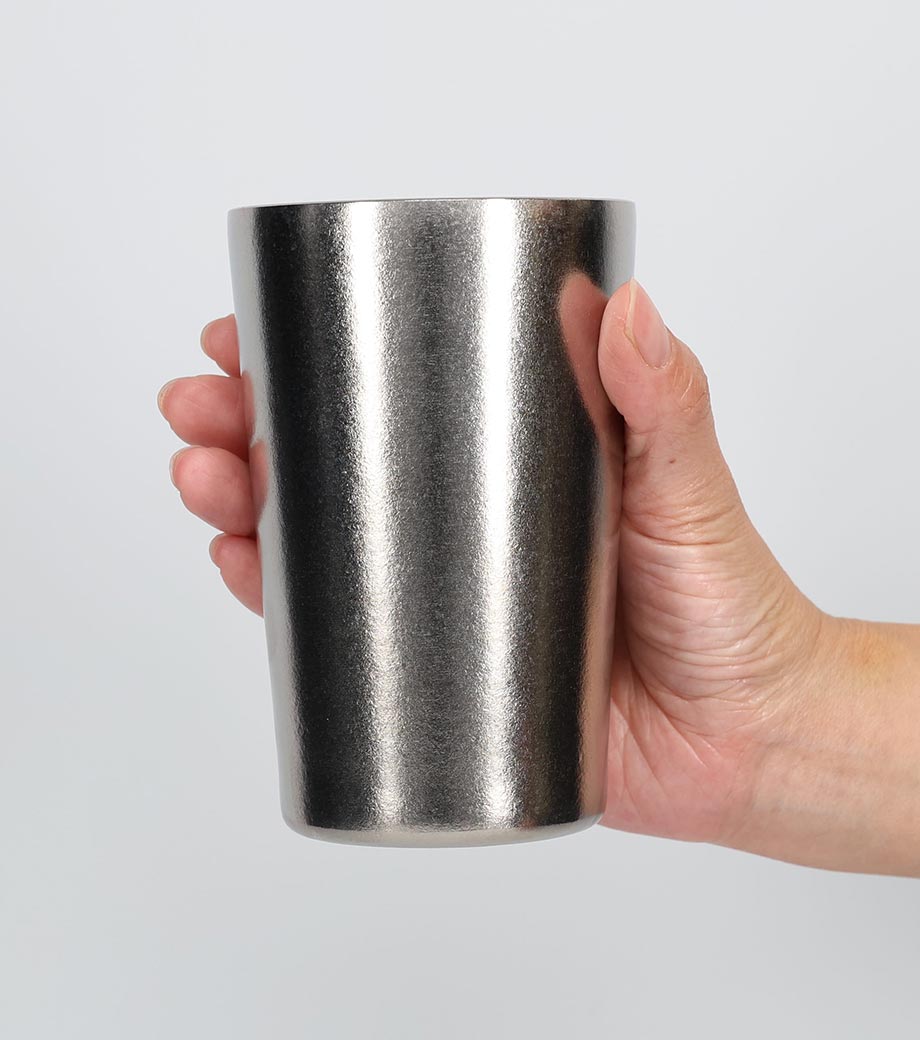 真空ステンレスタンブラー450mlは、丈夫で使いやすいステンレス製。真空二重構造なので、内瓶の飲み物の温度が外瓶まで伝わらず、飲み頃の温度を保ちます。氷を入れてもほとんど結露せず、コースター不要。熱い飲み物を入れても本体が熱くなりにくく、持ちやすいタンブラーです。