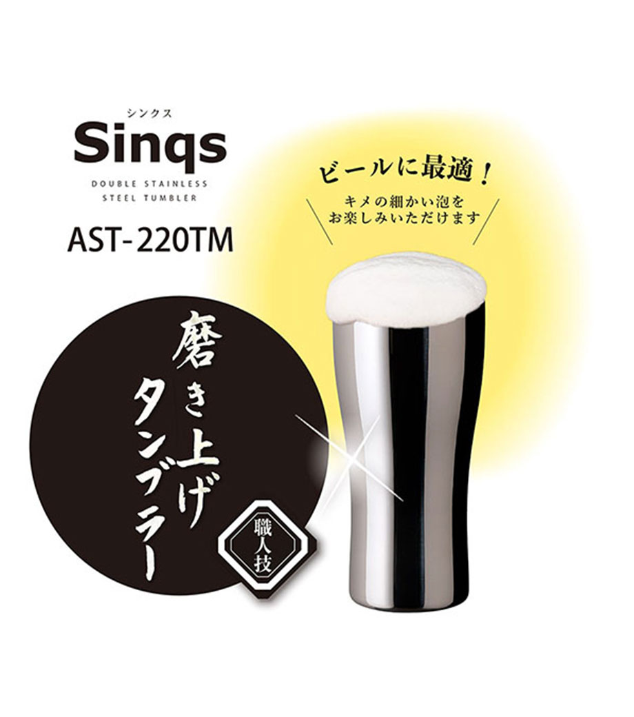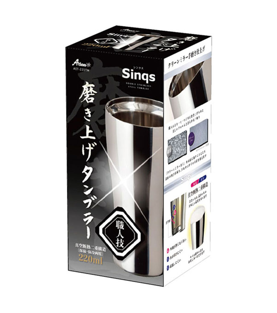 真空ステンレス磨き上げタンブラー220mlは手にフィットする小さめサイズのタンブラーです。程よい曲線が持ちやすさを生み出しています。真空断熱二重構造で冷たさ・温かさが長持ちするので、お酒を楽しむのにもぴったり。もちろんオフィスでコーヒーを入れておくのもおすすめです。