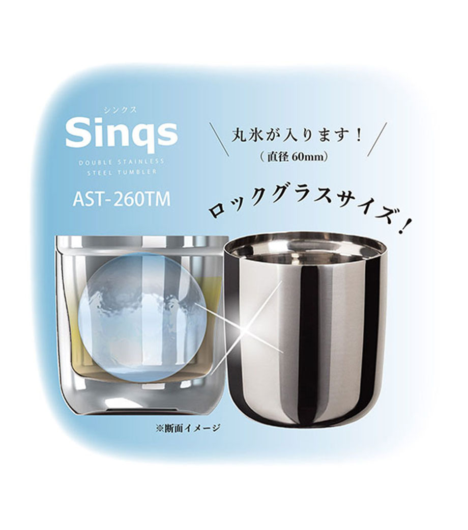 素材はSUS304という錆びにくいステンレスを使用しているので、丈夫で長持ちです。直径60mm程度の丸氷が入るので、ロックグラスとしても使用できます。特別感の溢れるタンブラーなので、創立記念や同窓会の記念品などにいかがですか?