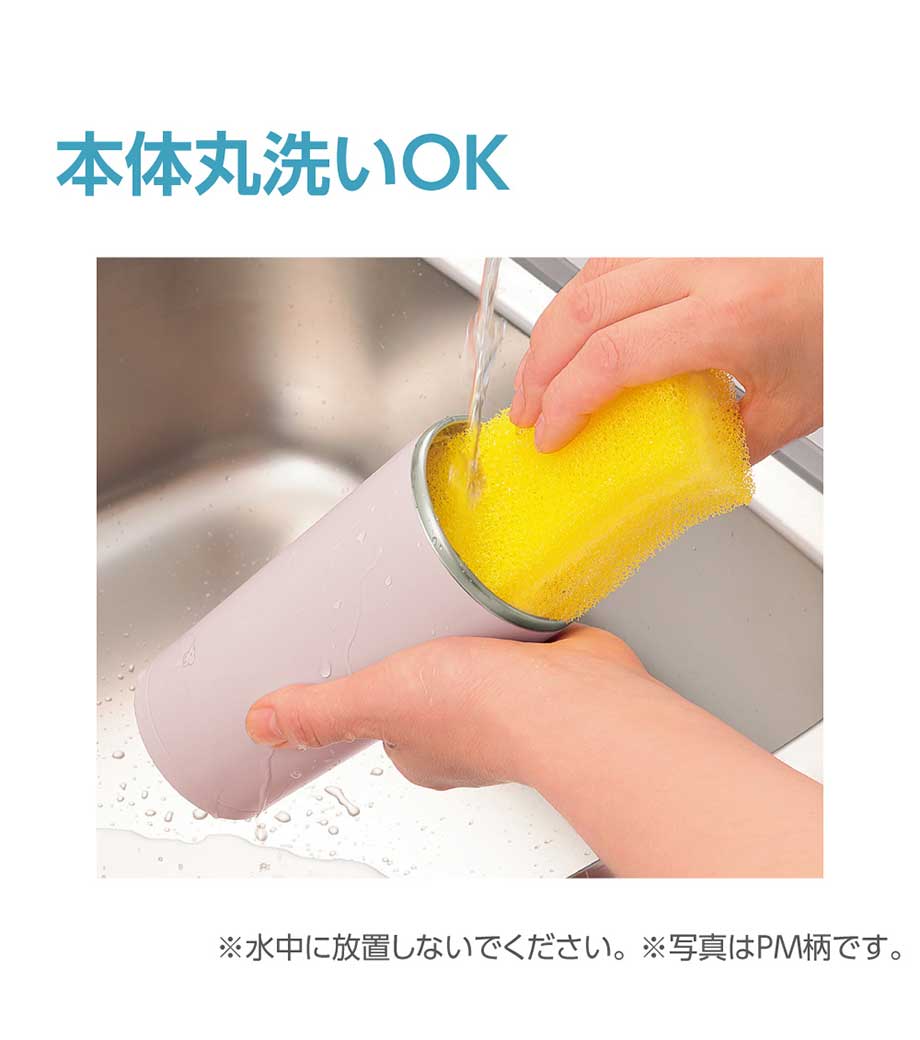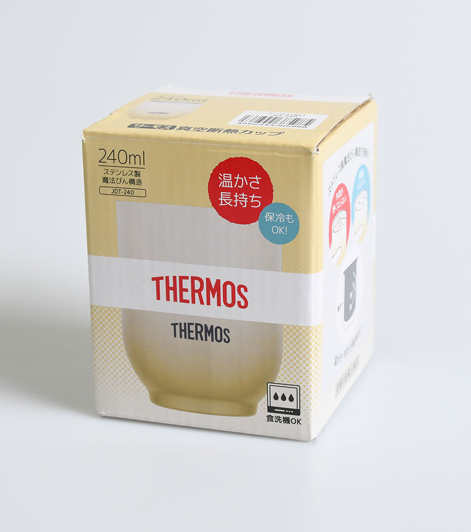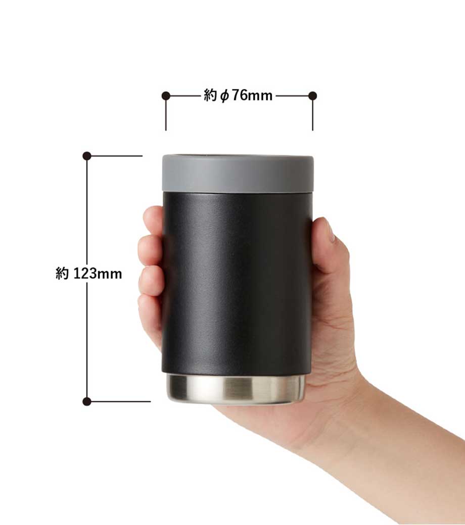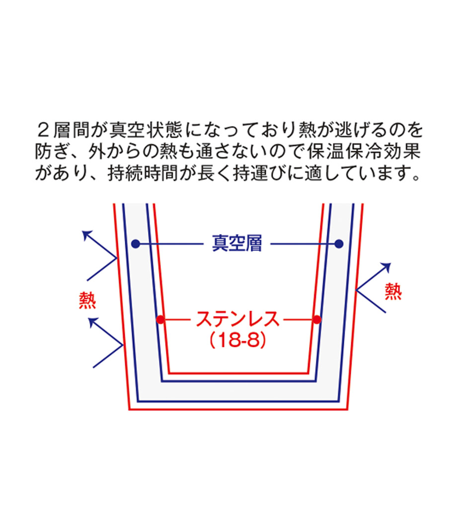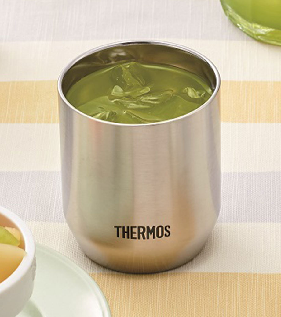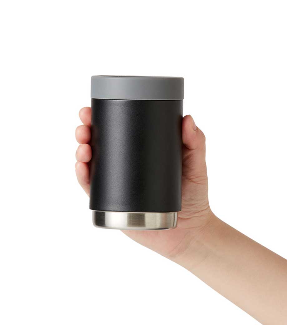 ステンレス製で真空二重構造なので、保冷・保温効果バッチリ!温かい飲み物を入れても外側が熱くならず、冷たい飲み物を入れた時は結露を防ぐ頼もしいアイテムです。
