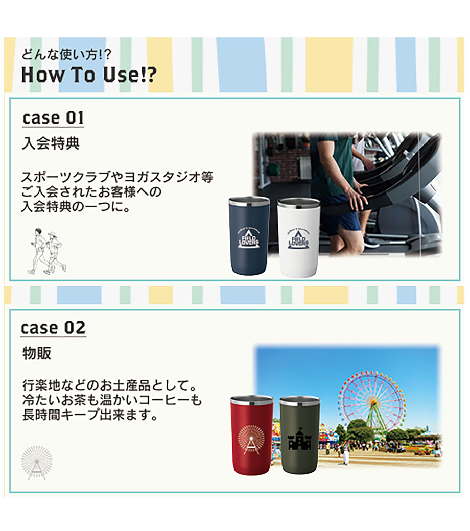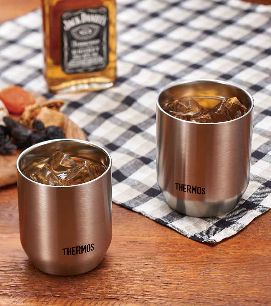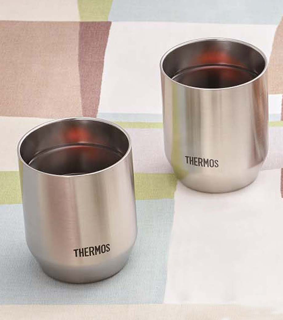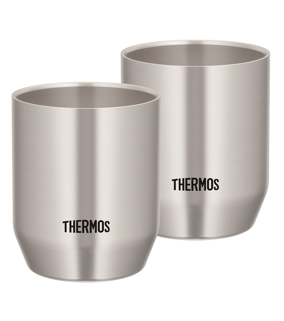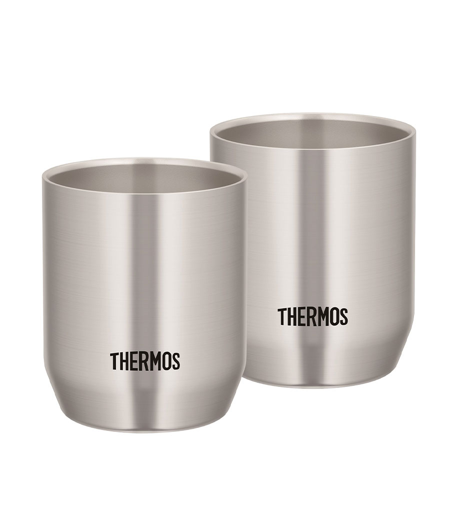 湯呑感覚で使えるステンレスカップの2個セット。真空二重構造で保温も保冷も飲み頃温度をキープします。確かな品質で世界シェアトップのサーモス(thermos)は幅広い年齢層に人気のノベルティ。