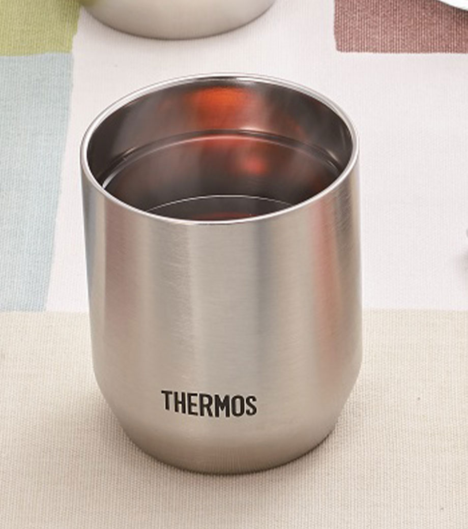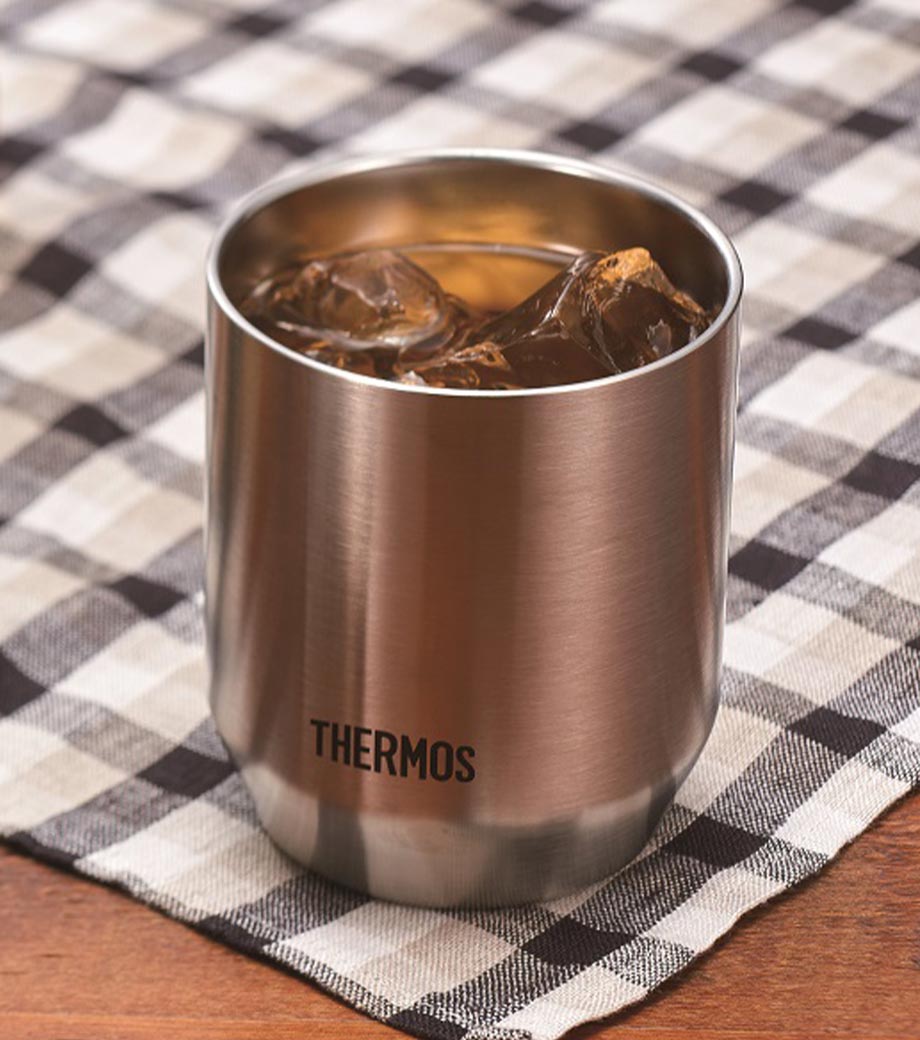 サーモス 真空断熱タンブラー350mlは温かいものを入れても外側が熱くならず、氷を入れた冷たいものを入れても結露しにくい優れもの。高級感があるステンレスタンブラーは記念品にピッタリです。