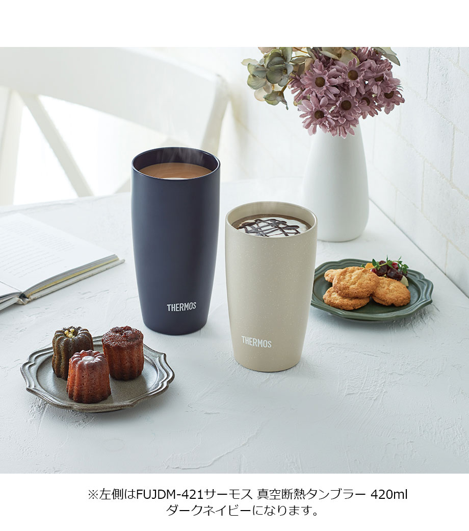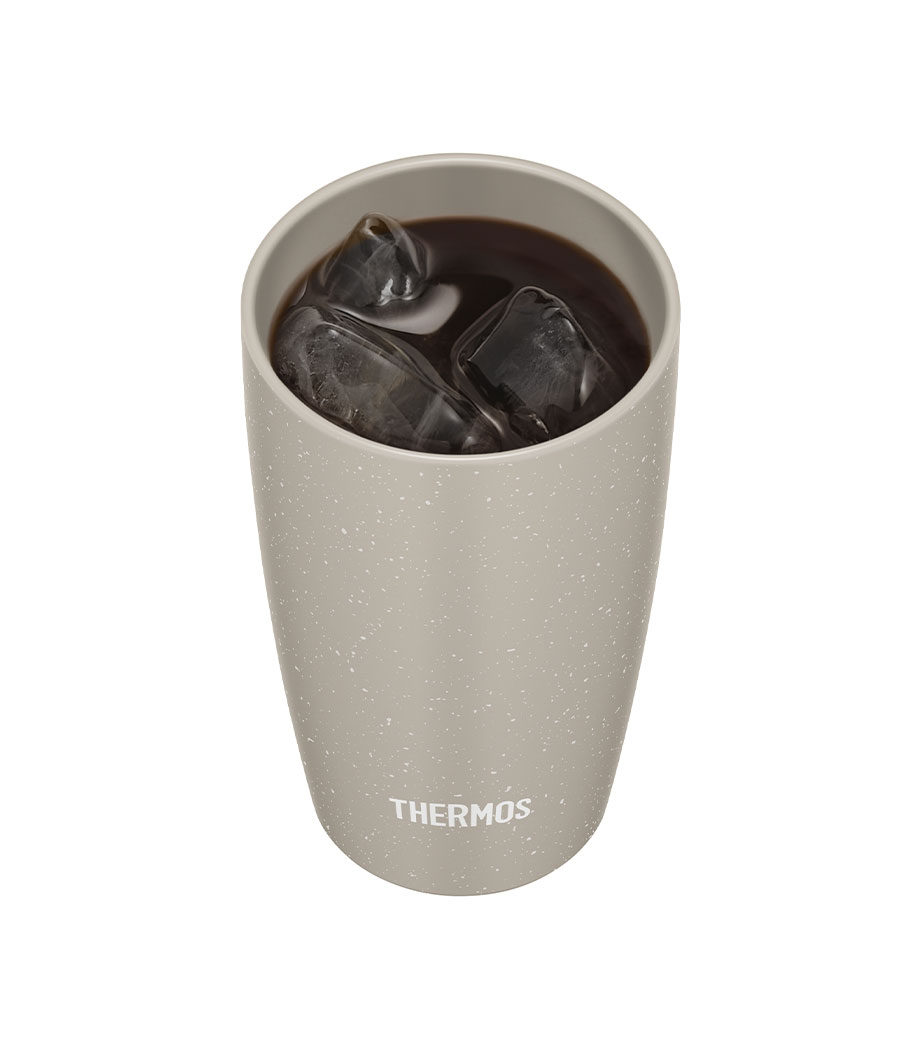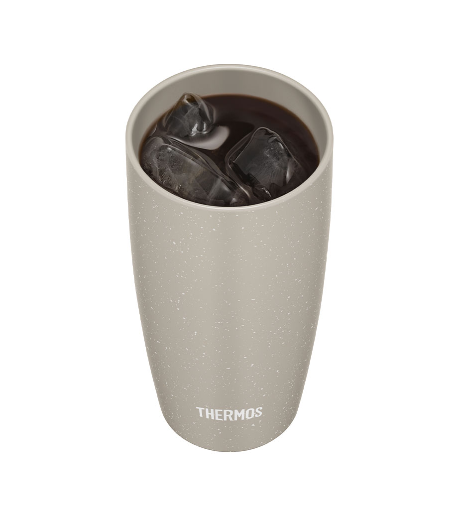 陶器のような質感が特徴的なサーモス(thermos)のタンブラー。飲み頃の温度を長く保つステンレス真空二重構造です。日常的に使いやすい容量420ml。