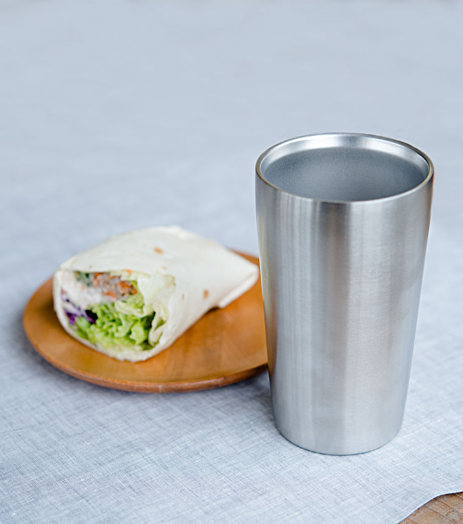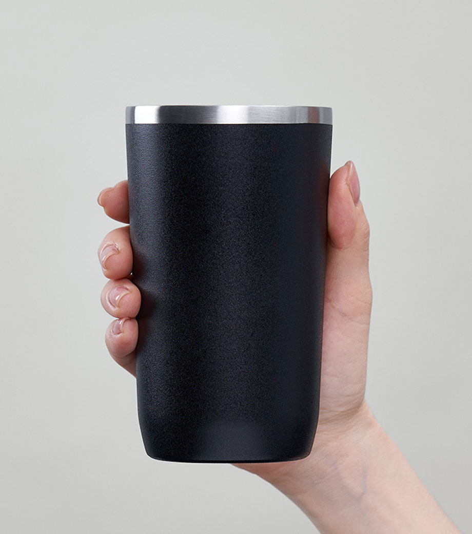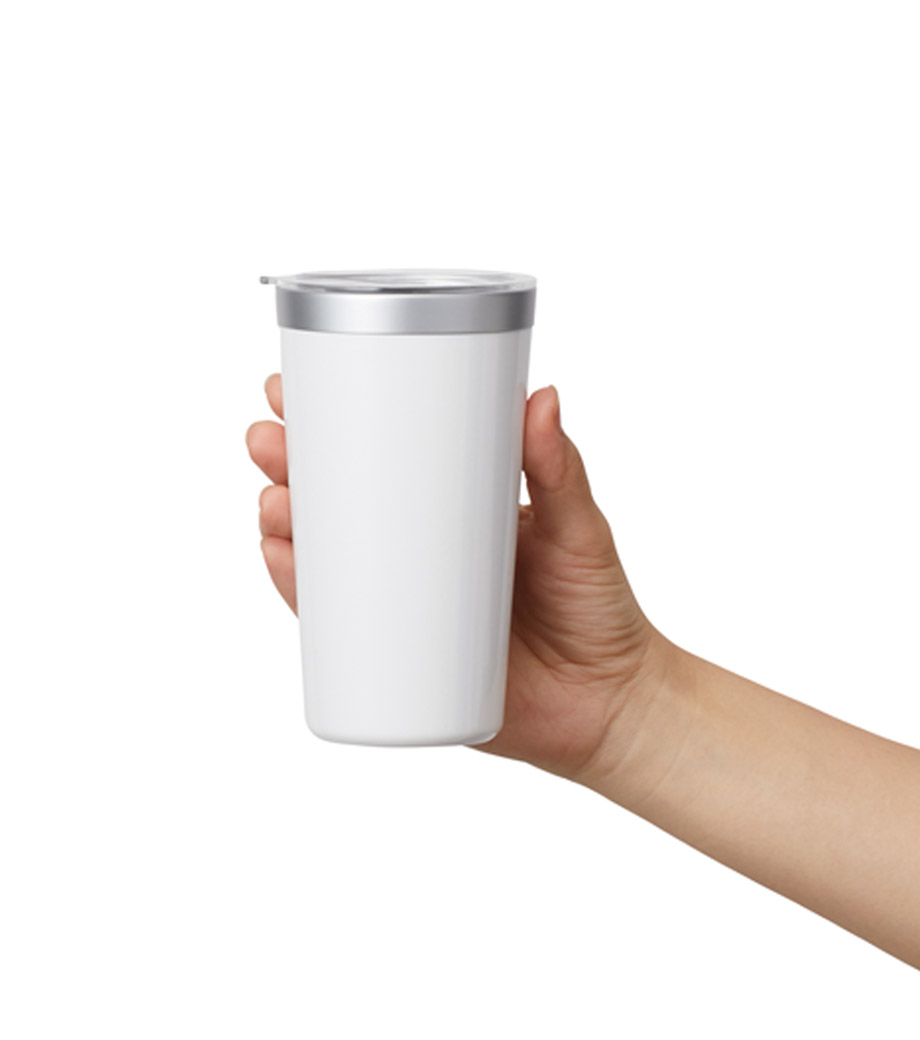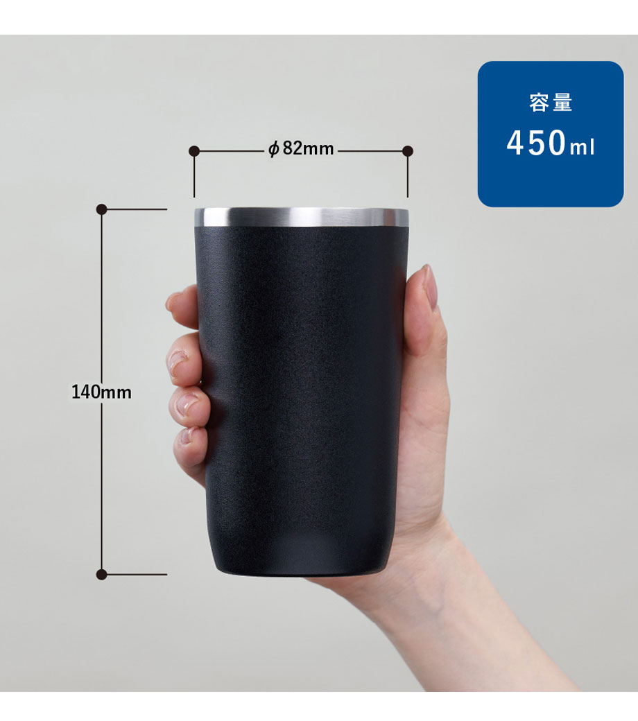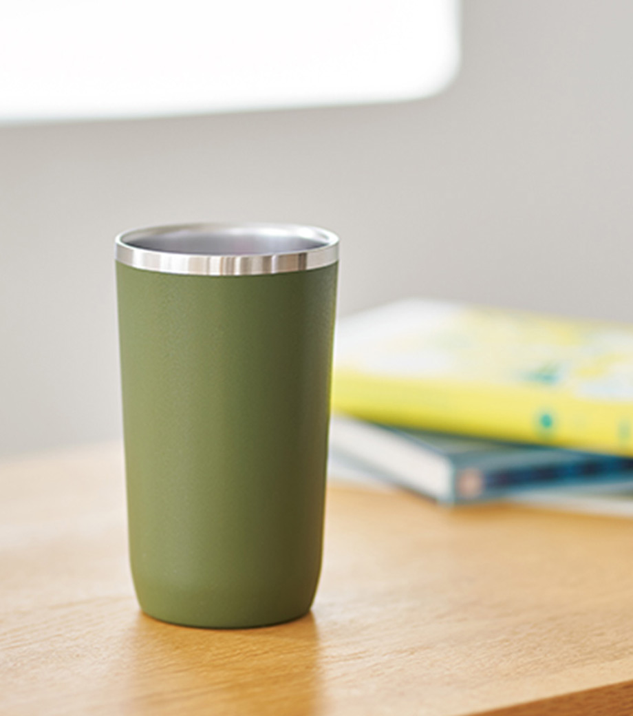 ステンレス・コンビニタンブラーは、容量約450mlでデスクワークのお供にピッタリなサイズ感。コンビニなどで購入した飲み物のカップを入れれば、ドリンクホルダーとしても使えます。
