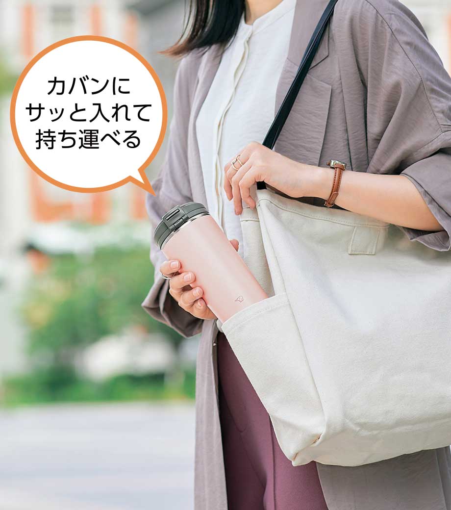 象印 ステンレスキャリータンブラー 0.30L(SX-KA型)はフリップオープンで、飲みたい時にサッと直飲みできるタンブラー。アウトドアや外出時にも嬉しいたっぷり容量約400mlです。ハンドスクリュー栓でこぼれる心配がなく、真空二重構造で保冷温性もバッチリ。飲みごろを長時間キープしてくれます。