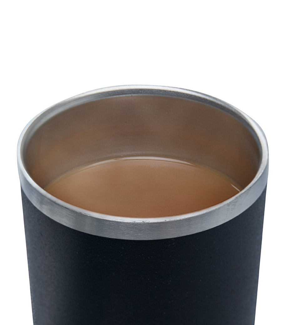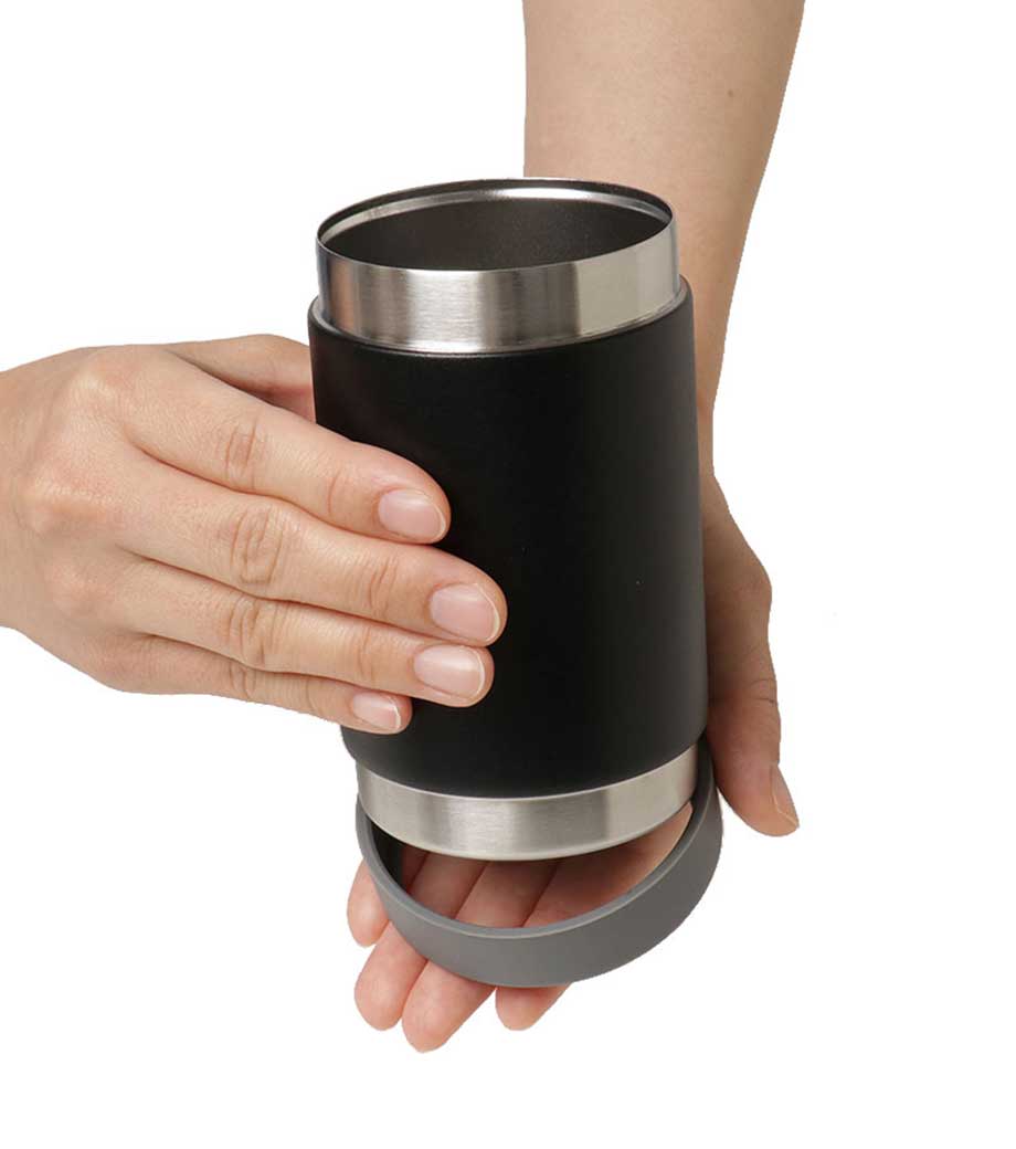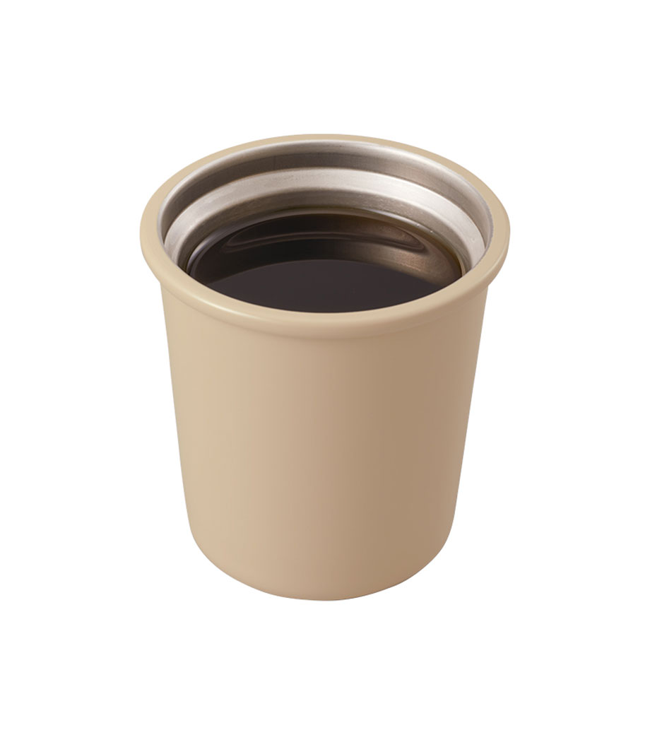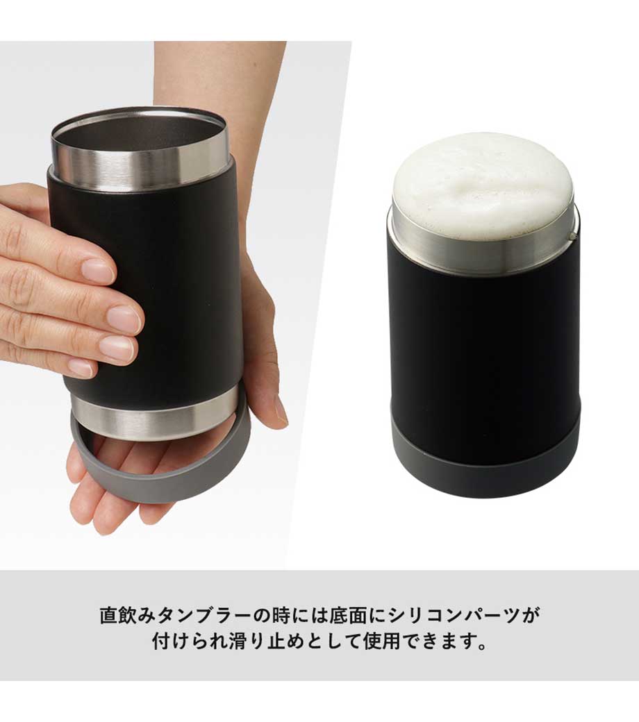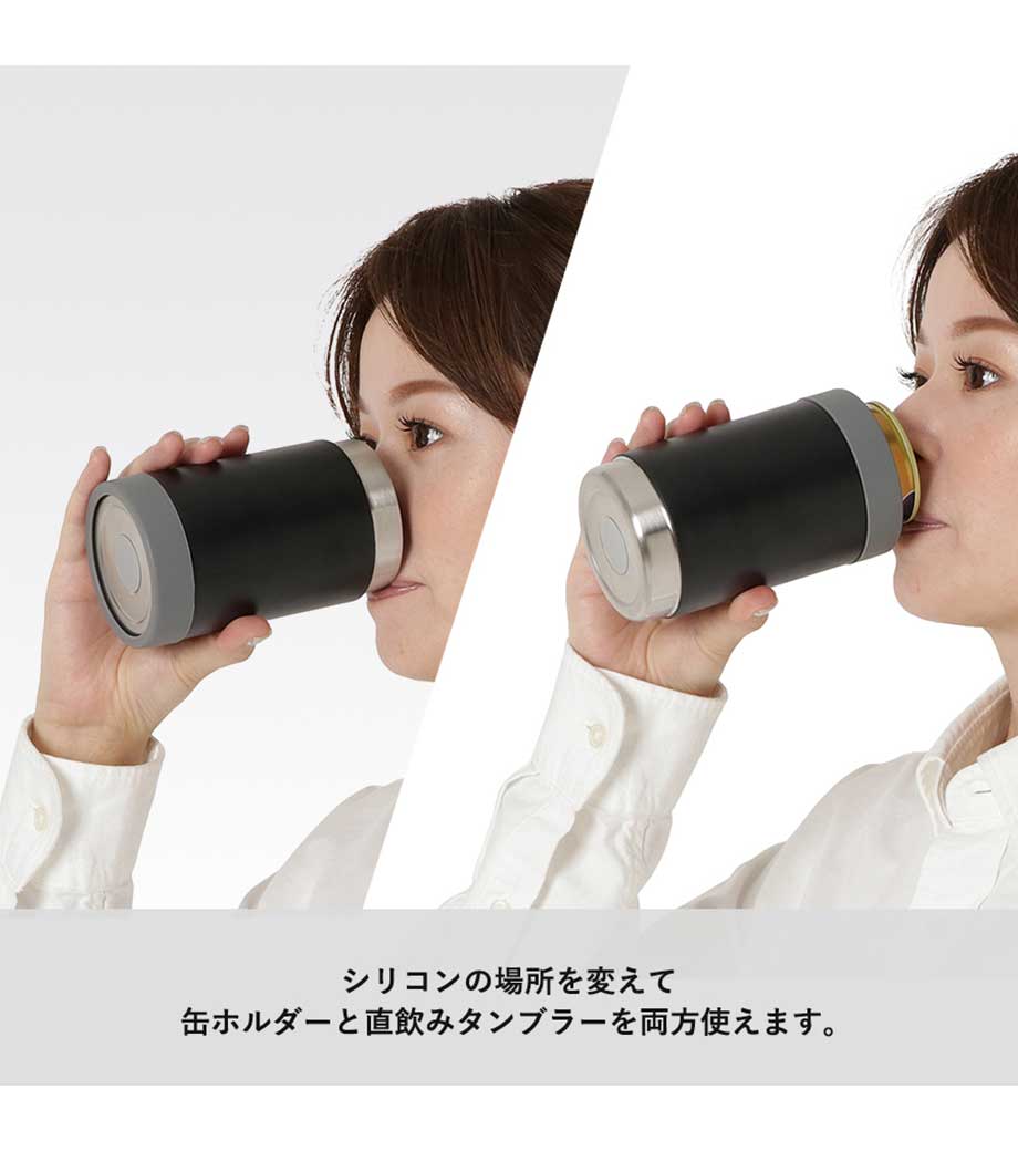 コンビニやコーヒーショップなどの紙カップやプラカップを入れてドリンクホルダーとしても使えます。タンブラーの飲み口部分の内側をへこませているので、カップが入れやすくて便利!飲み頃温度を長く楽しめます。