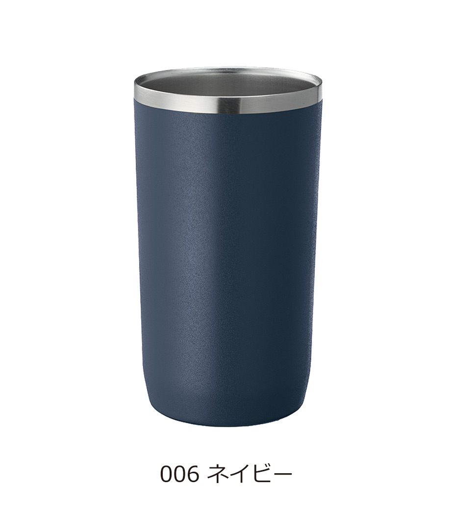 温もりがある質感のステンレス製タンブラーです。真空二重構造で保冷温効果はバッチリ。スタイリッシュな本体色は企業やブランドのイメージカラーで選ぶのがおすすめ。