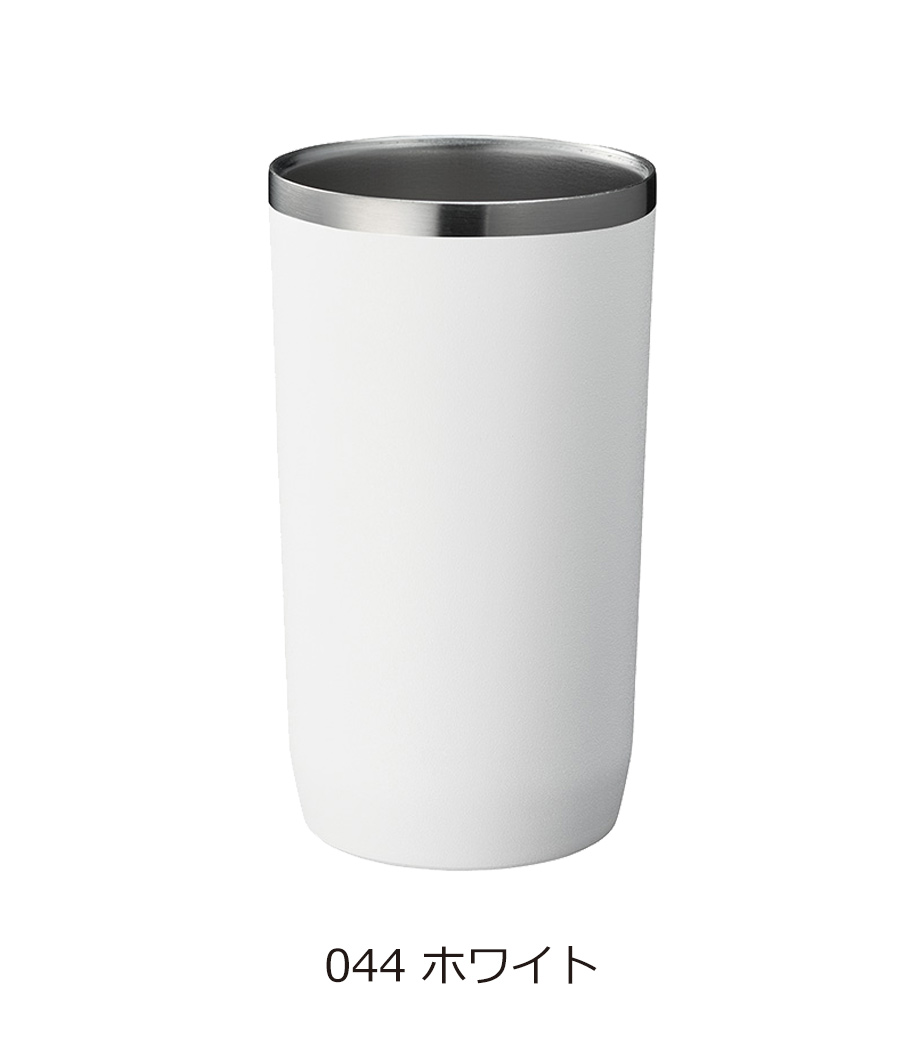 真空二重構造ステンレスタンブラーは保冷保温の機能性が高いタンブラー。飲みごろが長持ちし、コンビニのレギュラーサイズのカップがすっぽり収まります。デスク周りに置いていても結露で水浸しになる心配がありません。シンプルなブラック・シルバー・ホワイトの3色のご用意。本体色が分かりやすい化粧箱入りです。