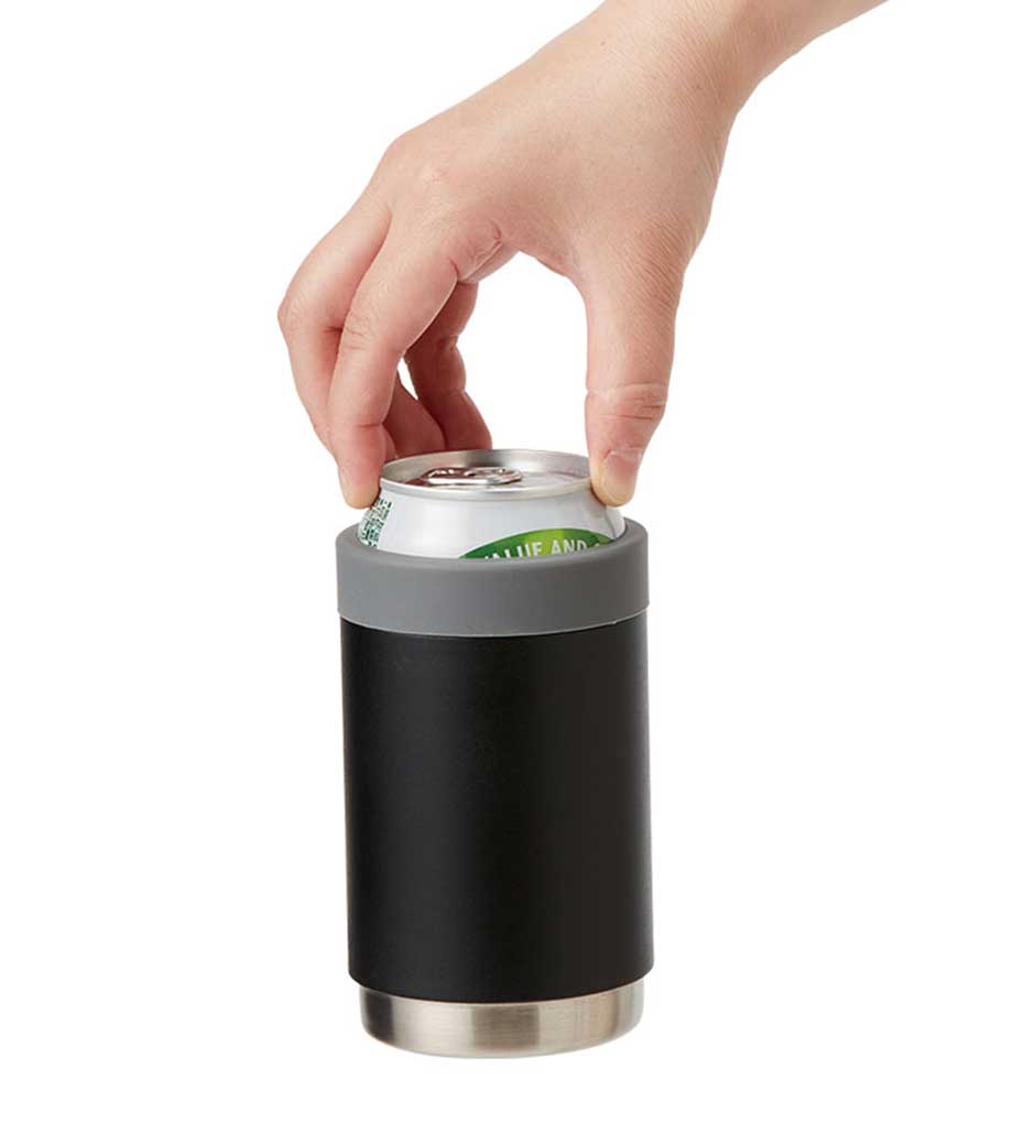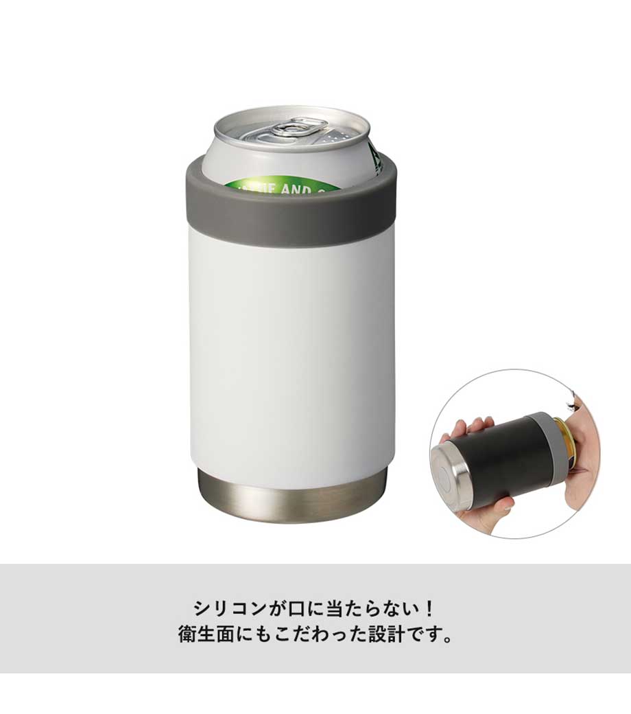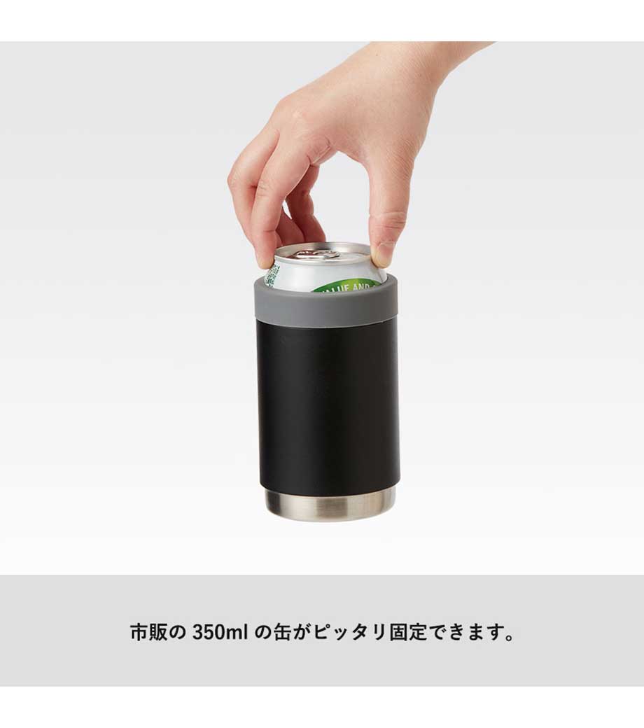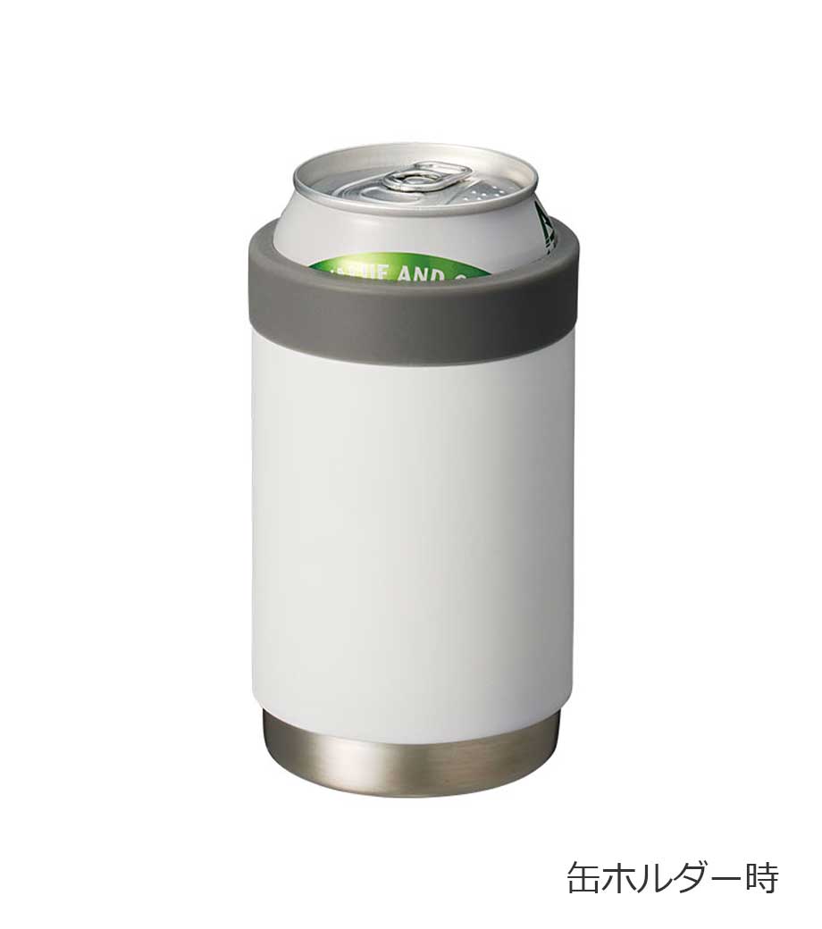 マルチステンレスボトル(ペットボトル対応)は、3通りの使い方ができる優れモノ。ラバーキャップを上側に着ければペットボトルホルダー、下側に着ければステンレスボトル・缶クーラーになります。真空二重構造なので保冷・保温機能もバッチリ!温かい飲み物を入れても本体が熱くならず結露や水濡れも防いでくれるので、デスクワークのお供にもピッタリです。500ml程度のペットボトルや缶に対応しています。