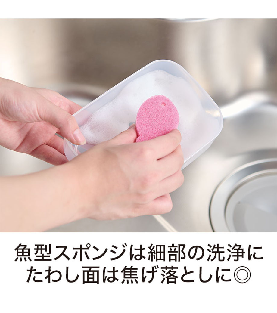 食器洗いはもちろんシンクやコンロまわりの汚れ落としまで幅広く活躍します。実用性と可愛さを兼ね備えた毎日使いたくなるお掃除アイテムです。
