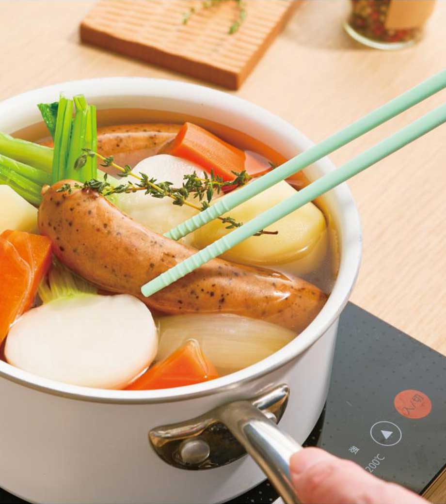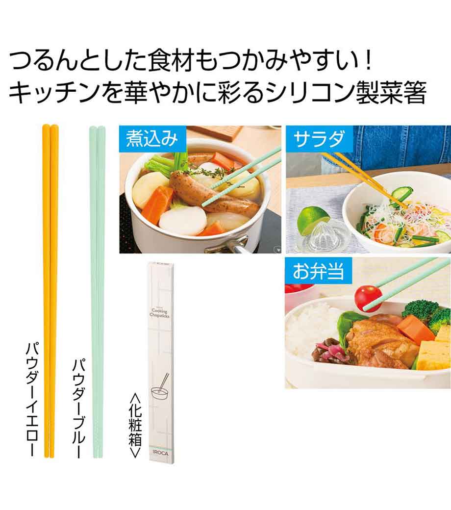 毎日の食卓づくりに役立つシリコン菜箸。シリコン素材でつるんとした麺類や煮物、炒め物の具材もしっかりつかみやすいのが特長です。滑りにくく扱いやすいため調理中のちょっとしたストレスも軽減してくれます。