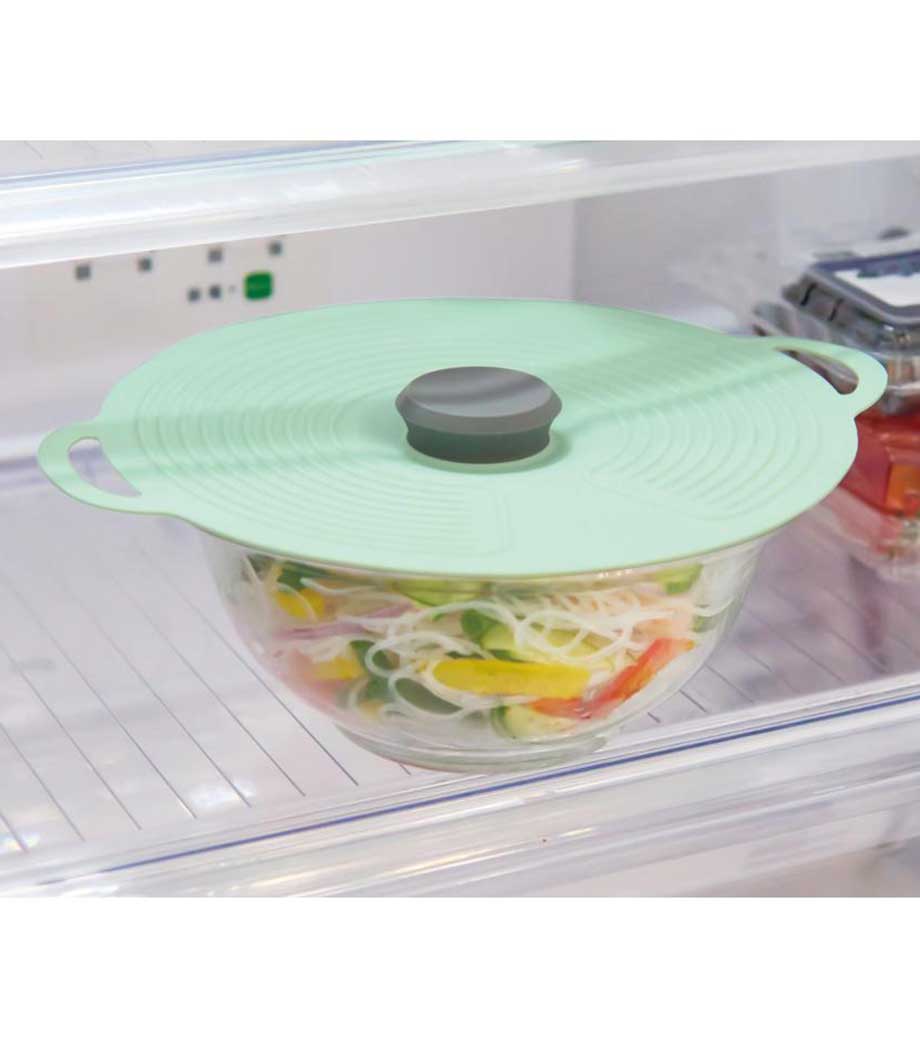 毎日の調理や保存に便利な繰り返し使えるシリコン製のエコな蓋です。電子レンジ対応なので温め直しもそのままでき、ラップの代わりとして手軽に使えます。