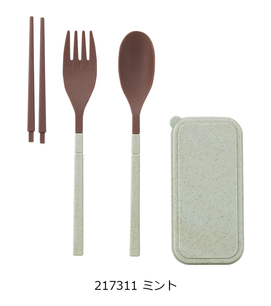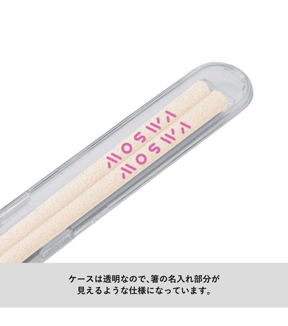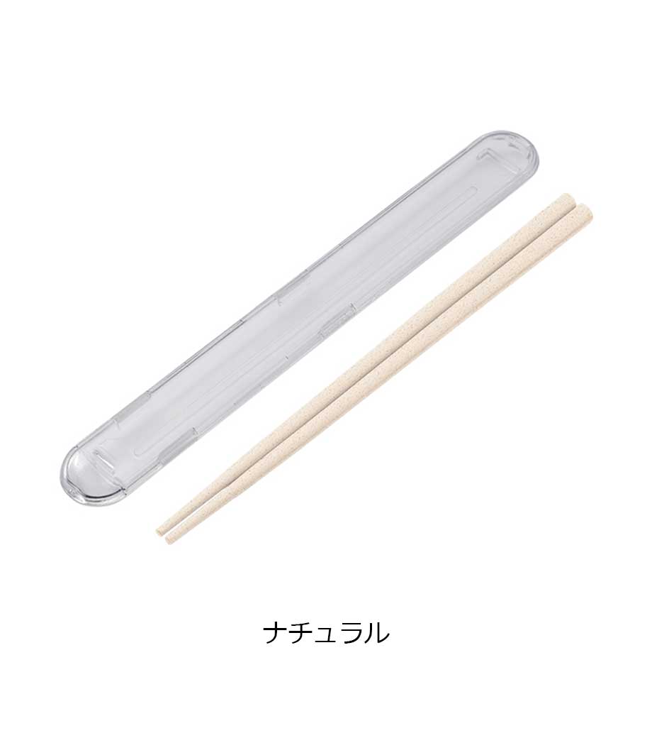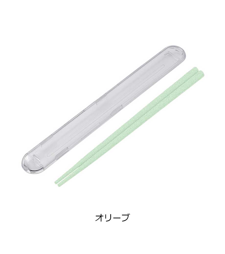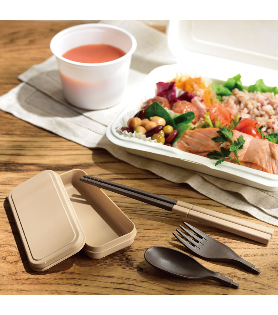 持ち運びに便利なケース入りのカトラリー。箸にバンブーファイバーを25%以上配合し、樹脂の使用量を削減したエコで環境に優しいアイテムです。箸は先端にシボをつけることで、食品が掴みやすくなっています。ケースは透明で中が見えるデザイン。2つに分解でき、細部まできちんと洗えるので衛生的です。