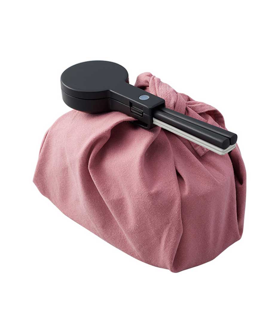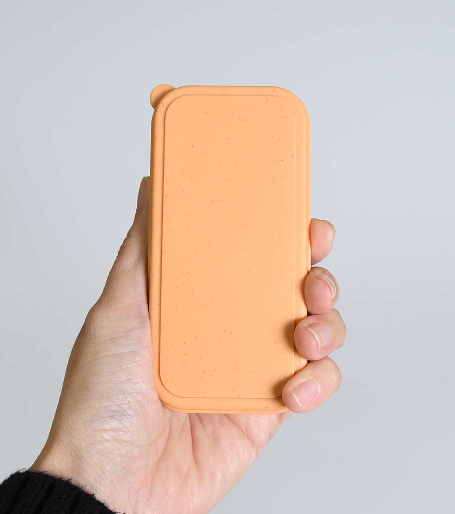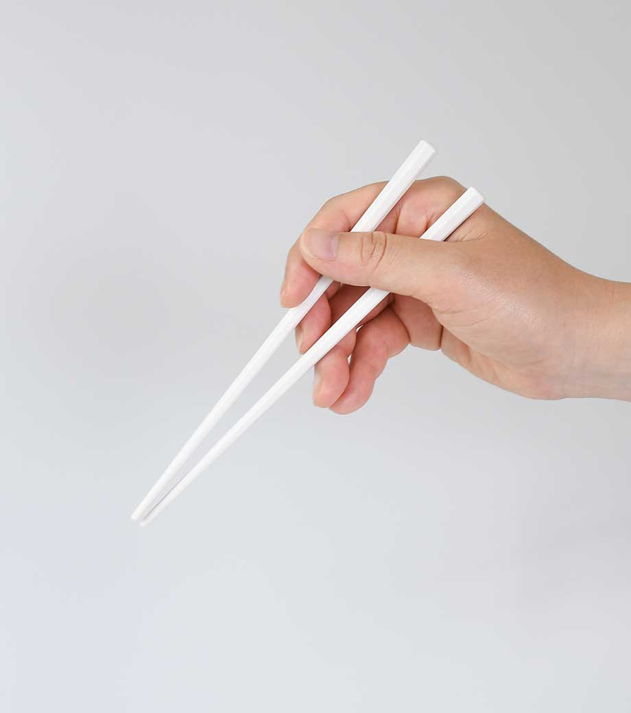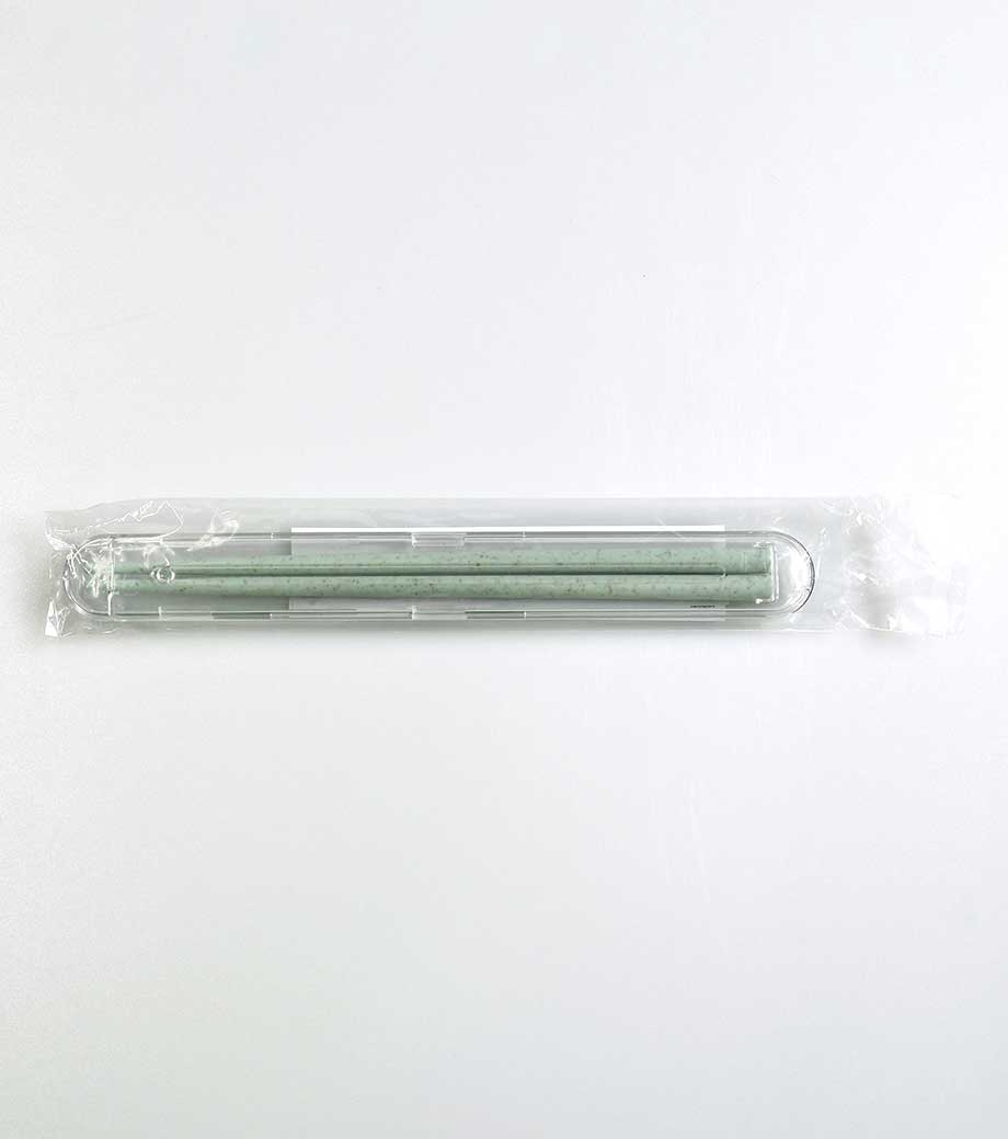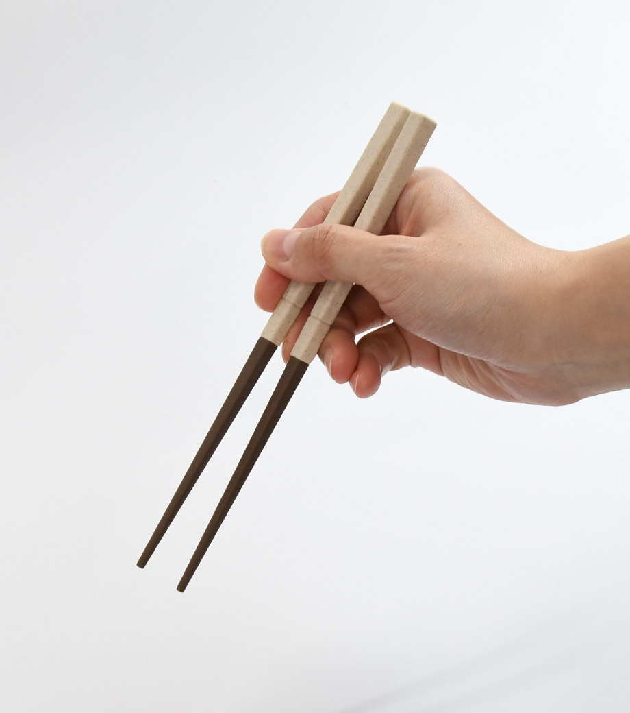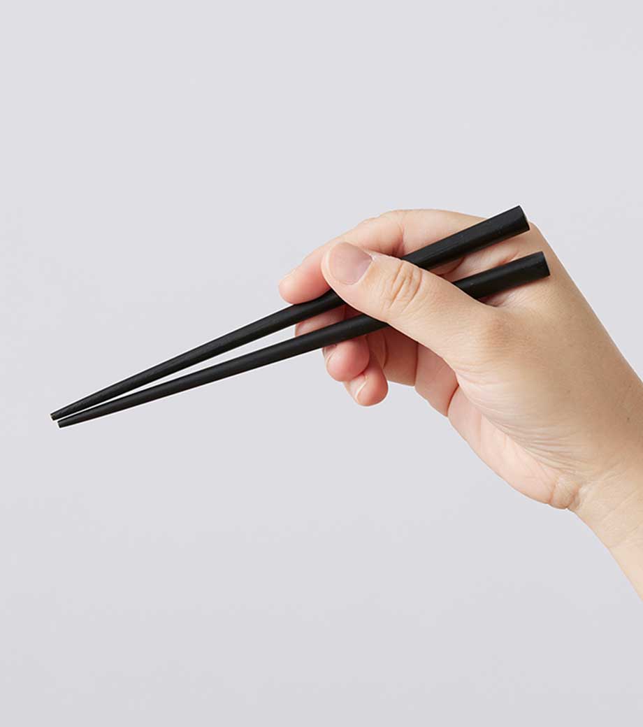 箸の下半分がケースで覆われているコンパクトなカトラリーです。ケースを付けると凹凸がないシルエットになるすっきりしたデザイン。ケースは先端が開く仕様なので、隅まできちんと洗えて衛生的です。箸はバンブーファイバーを25%以上配合したエコ素材を使用。環境に配慮したアイテムはSDGsへの取り組みをPRできます。
