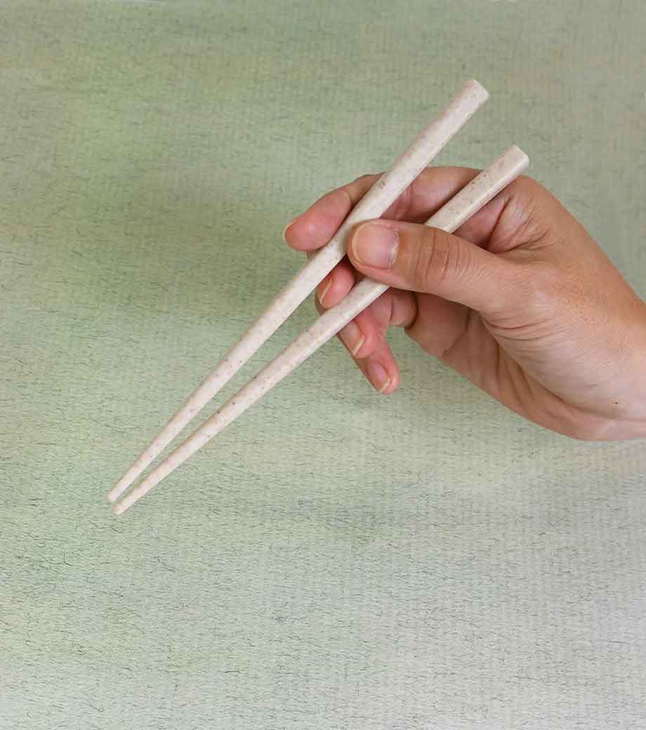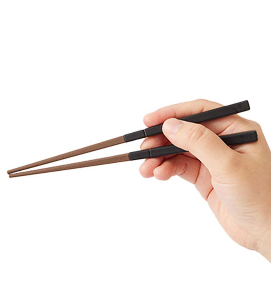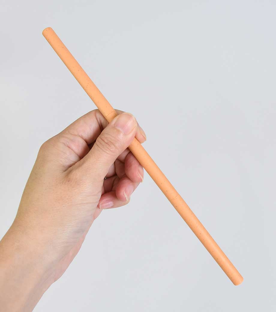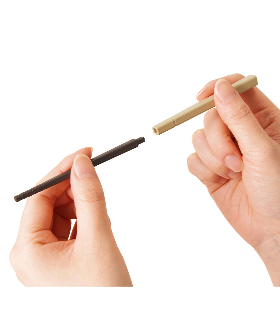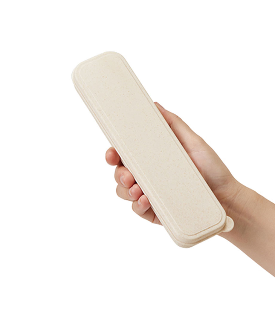 箸の下半分がケースで覆われているコンパクトなカトラリーです。ケースを付けると凹凸がないシルエットになるすっきりしたデザイン。ケースは先端が開く仕様なので、隅まできちんと洗えて衛生的です。箸はバンブーファイバーを25%以上配合したエコ素材を使用。環境に配慮したアイテムはSDGsへの取り組みをPRできます。