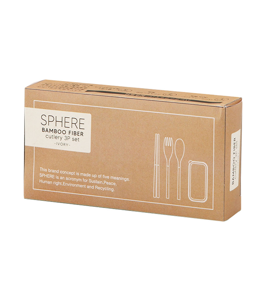スフィア・バンブーファイバーカトラリー3点セットは、注目の素材「バンブーファイバー」を使用したエコグッズ。お箸・フォーク・スプーンの使い分け便利な組み立て式3点セットです。軽くて丈夫、かさばらずコンパクトに持ち運びができるので、毎日のお弁当やキャンプ・ピクニックなどのアウトドアでも大活躍!おしゃれなアイボリーとミントから本体色を選べます。