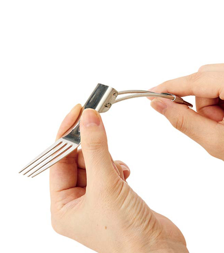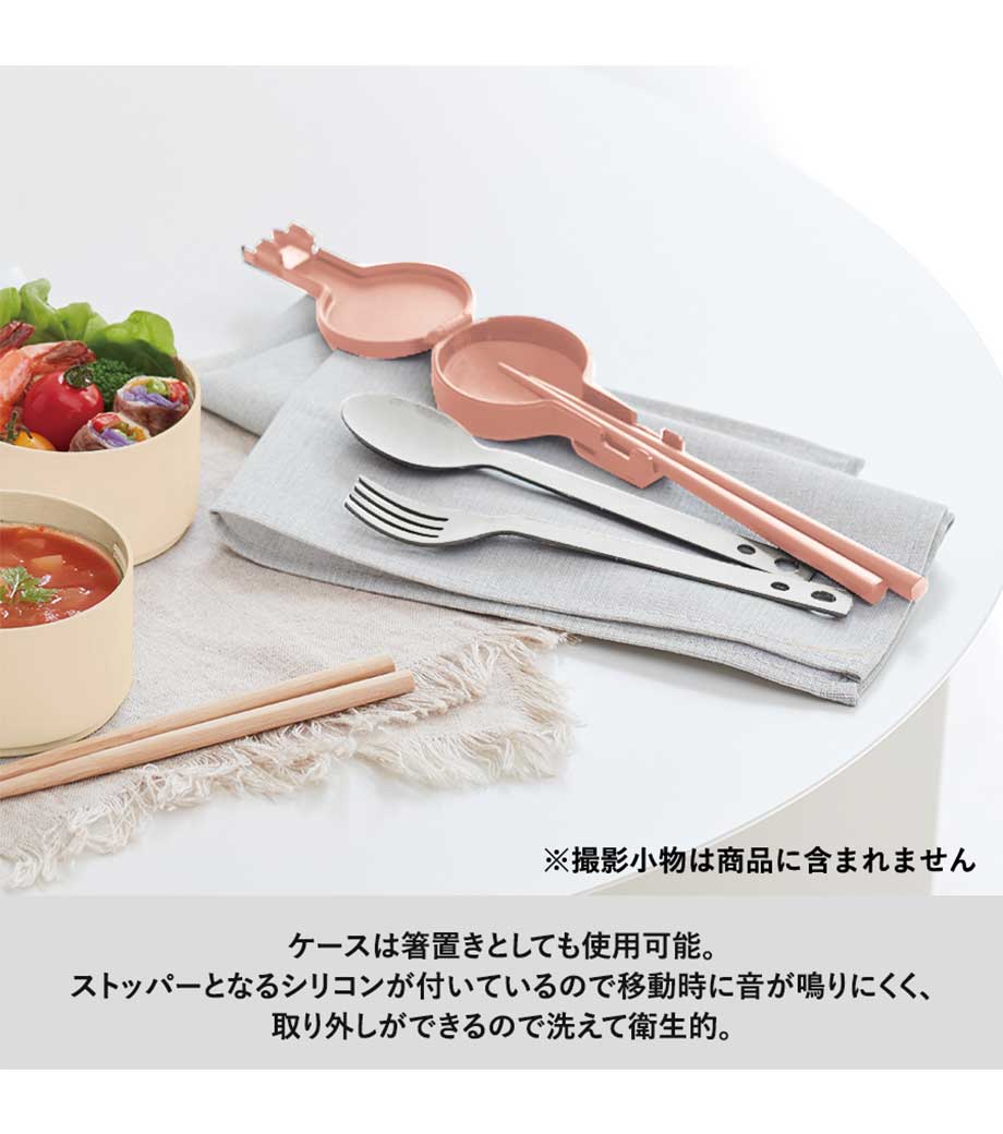 ケース内部にシリコーンのストッパーが付いており、携帯時にカトラリーがカチャカチャ音が鳴らないようになっています。