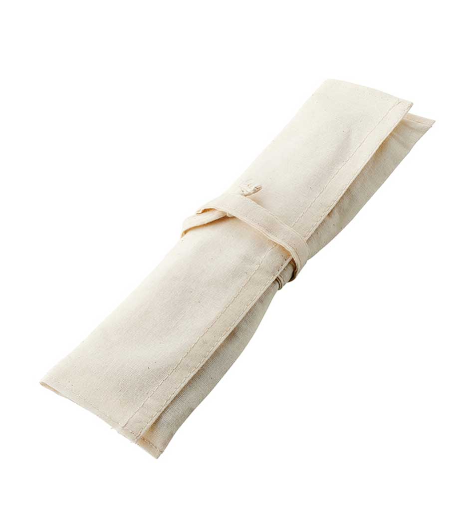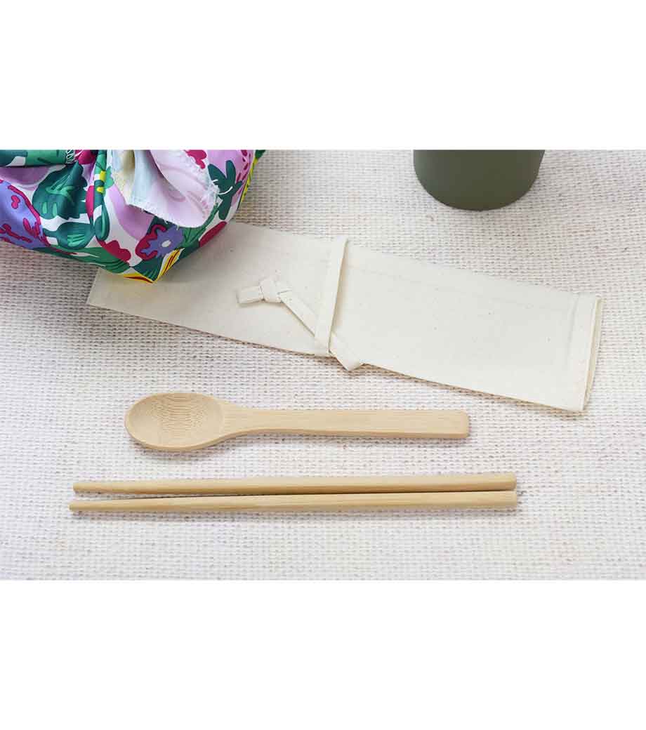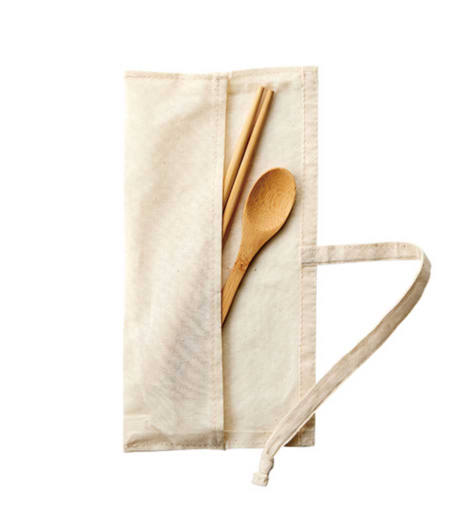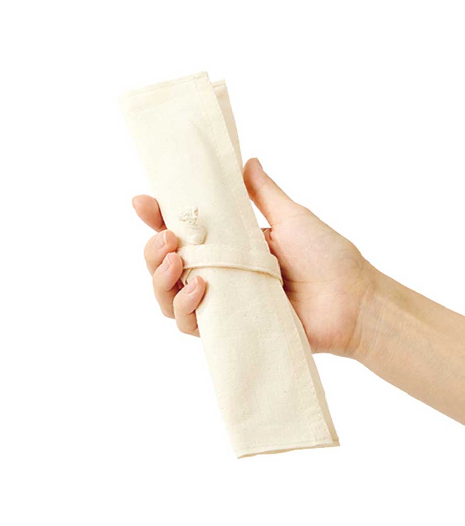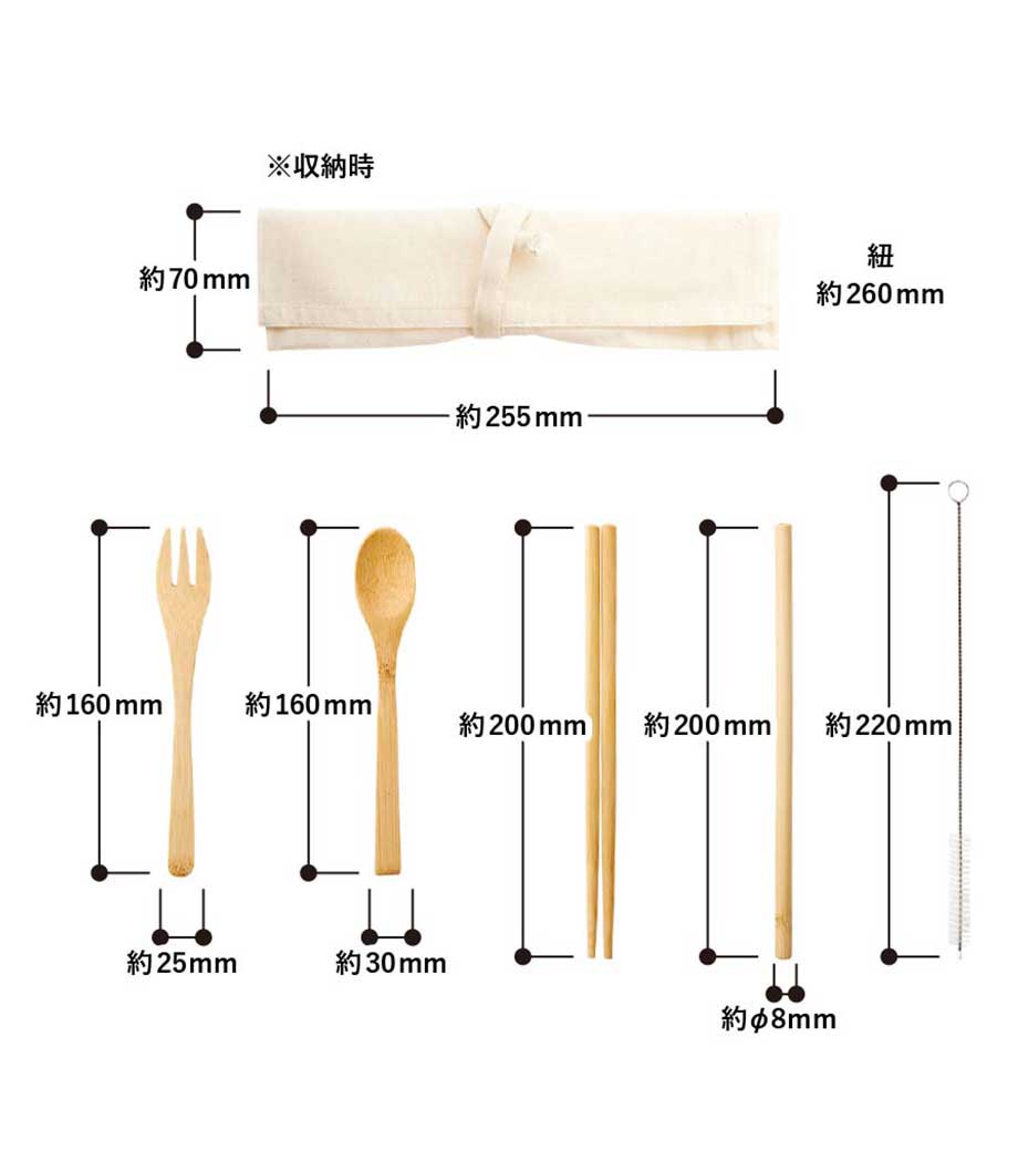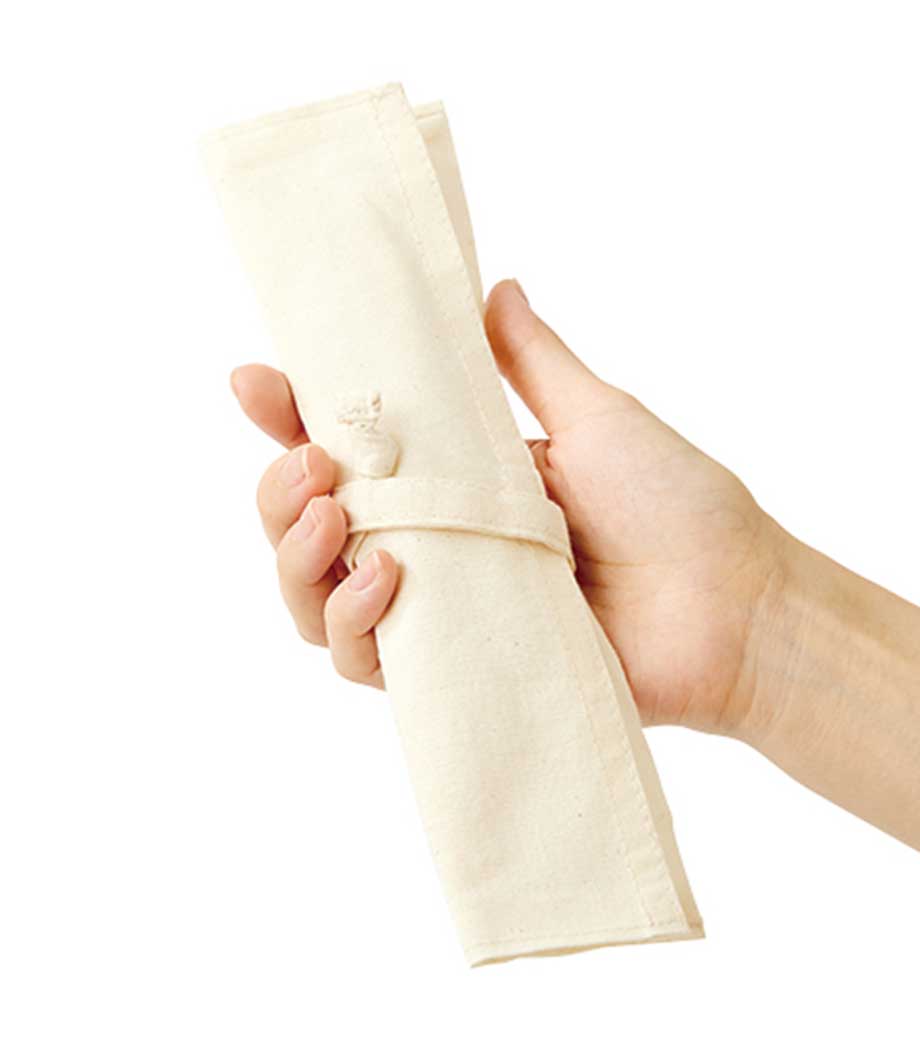 カトラリーには竹を使用しており、コットン素材のケースと相まってナチュラルな印象です。デザイン入り化粧箱に入れてお届けします。