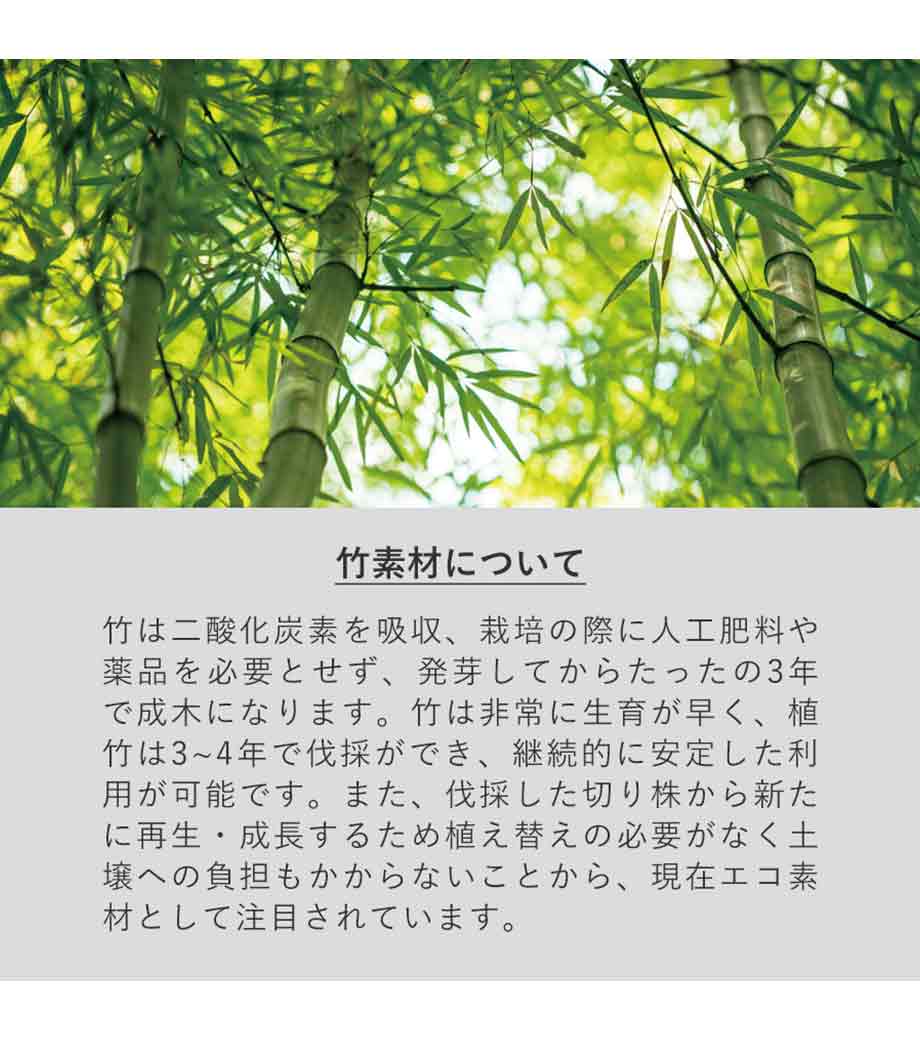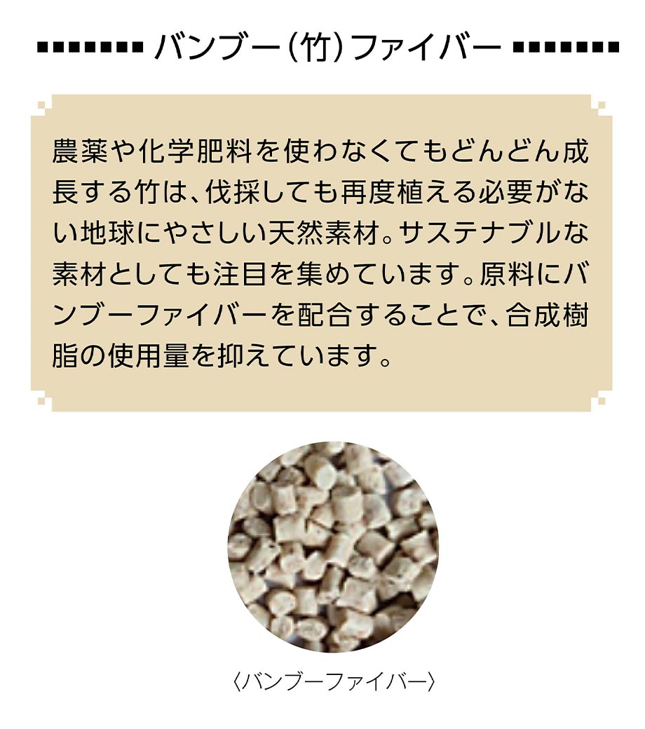 バンブーコンパクトカトラリーは竹繊維を約20%配合し、プラスチック削減に貢献しているエコ商品です。竹は約2~3年で成長を繰り返すため、伐採しても永続的に利用が可能。SDGsの目標達成に貢献できるサステナブルな素材です。