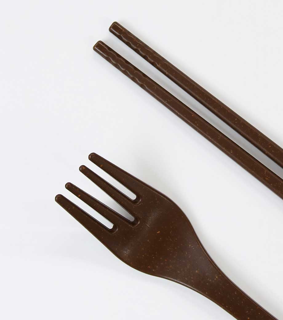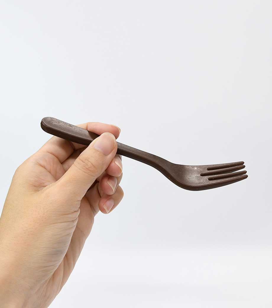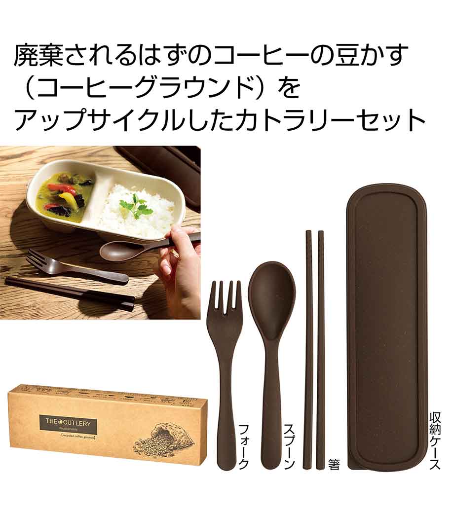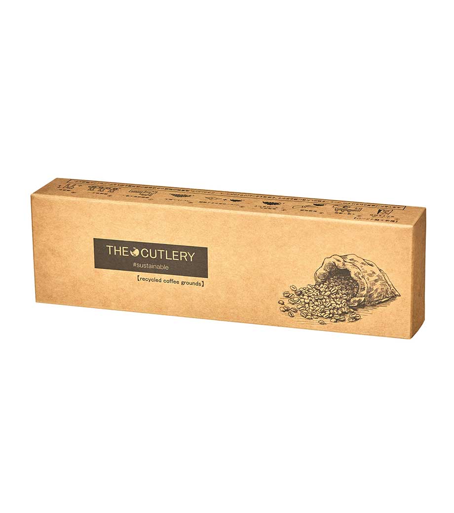 ザ・カトラリー(コーヒーグラウンド配合)#sustainableは、コーヒーを抽出した後に残る本来であれば廃棄されるはずの豆かす(コーヒーグラウンド)を使用した、アップサイクルのカトラリーセットです。