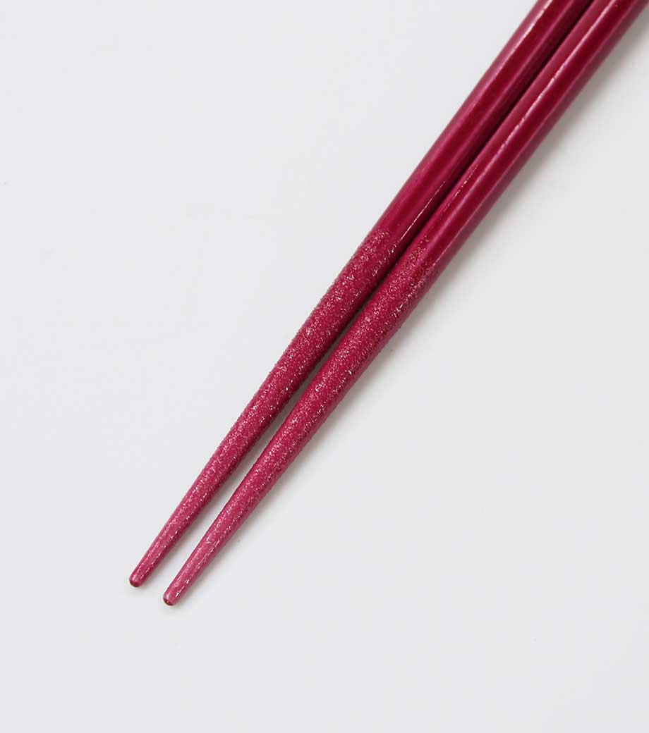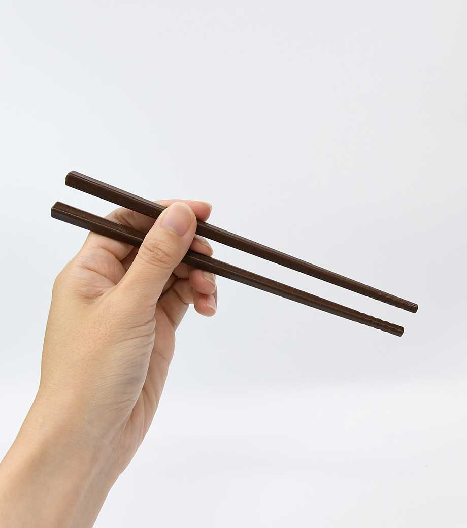 国産ひのき箸は、天然木のナチュラルな色合いが魅力的。年代や性別を選ばないシンプルなデザインで、どんな食卓にも馴染みます。表面はポリエステル塗装が施されており、ツルっとした手触りです。箸の先は滑り止め付きで機能性も抜群!丸みのある四角い形状なので、手にフィットしやすく使いやすいです。