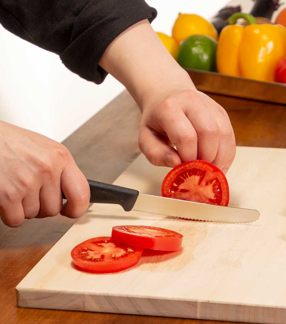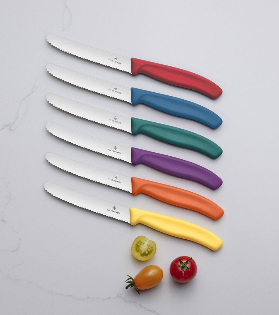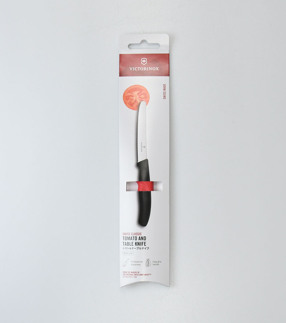 ビクトリノックス トマト&テーブルナイフは細かい波刃が食材をしっかり捉え、少しの力でスムーズにカットできます。持ち手は人間工学に基づいた、手になじむ滑りにくい形状。細身で軽量なのでキャンプなどのアウトドアにピッタリ!刃先が丸く、テーブルナイフやバターナイフとしても使えます。食洗機対応でお手入れもらくらく。