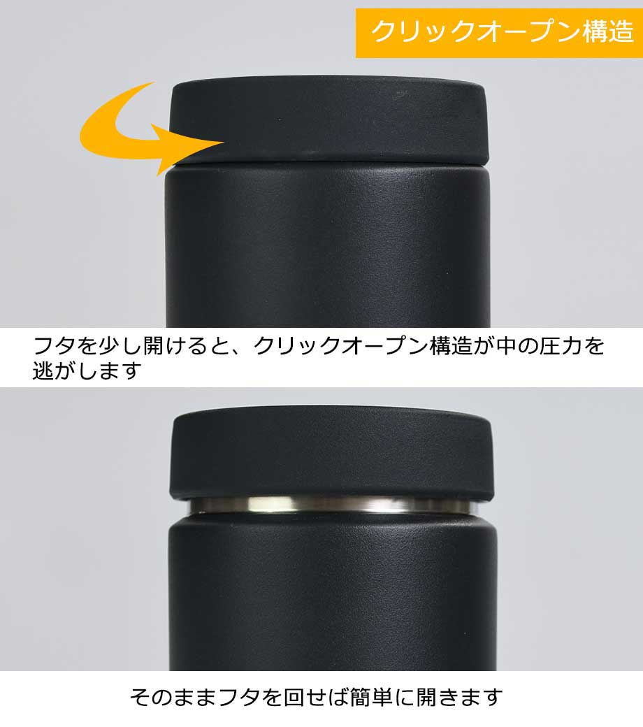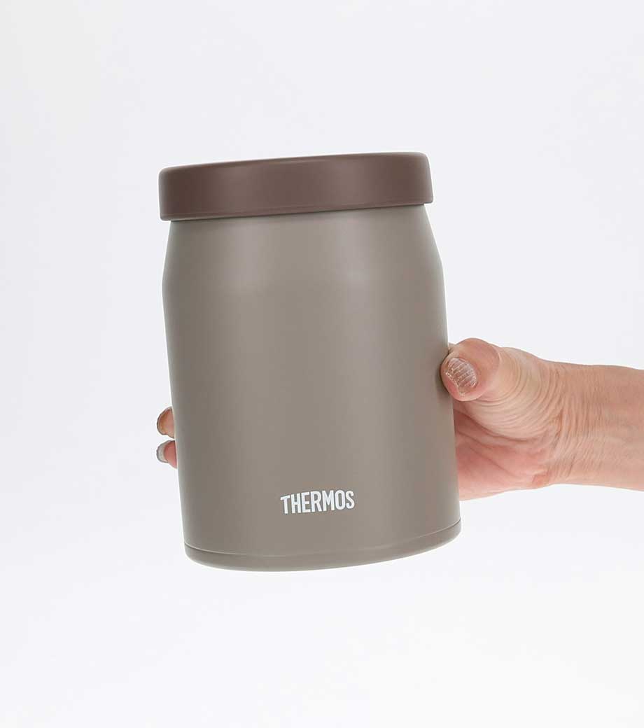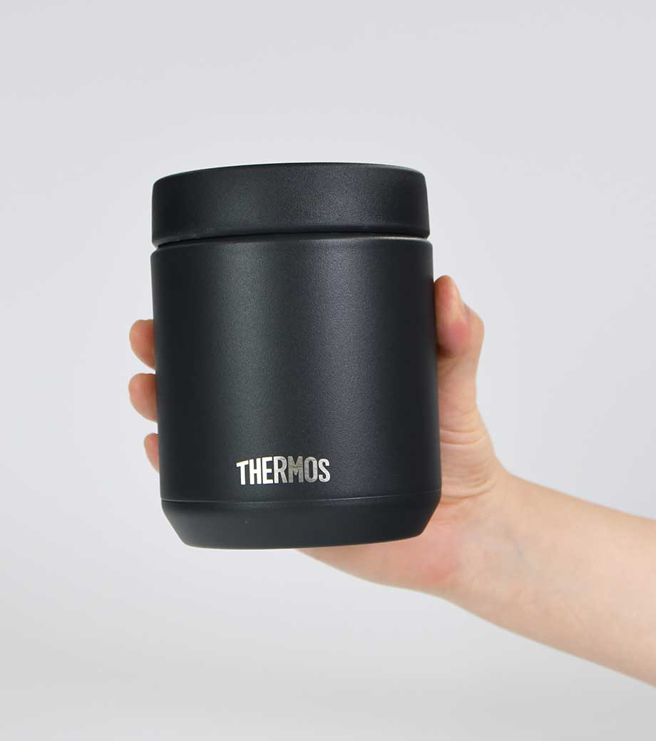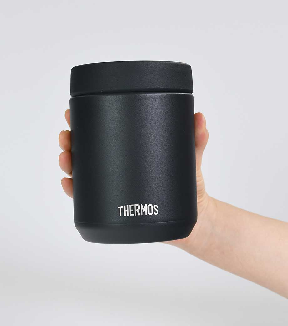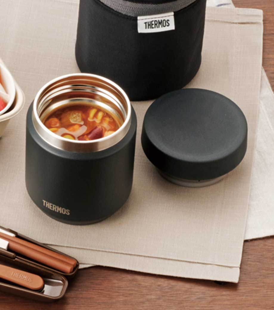 Zalattoサーモフードポットは、その名の通りザラっとした手触りが特徴のフードポット。真空二層構造で保冷保温効果が続き、長時間の持ち運びでもおいしさキープ!便利な空気弁付きで、熱いスープなどを入れたときも蓋が開けやすいのが嬉しいポイントです。