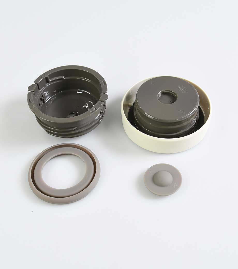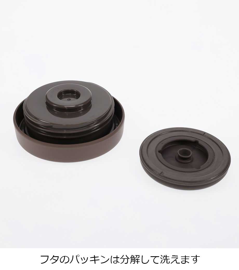 容量約400ml、ステンレス魔法びん構造のスープジャーです。高い保温・保冷力は、全ての季節のお弁当に活躍します。飲み口は丸みがあり、やさしい口当たり。また、パッキン一体構造でお手入れ簡単!内フタが取外し可能で洗いやすく、いつも清潔に使えます。本体とフタが食洗機対応なのも嬉しいポイントです。