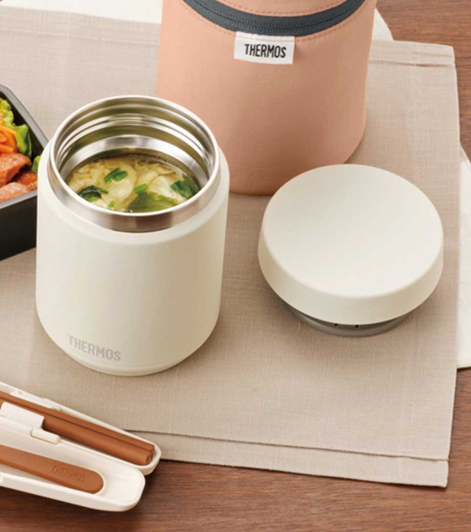 ステンレス魔法びん構造で食べ頃温度を長時間キープしてくれるスープジャーです。飲み口は丸みがあり、やさしい口当たり。温かいスープだけでなく、冷たいデザートにも最適です。ランチタイムが楽しくなりそうですね。本体・フタが食洗機対応なのも嬉しいポイントです。