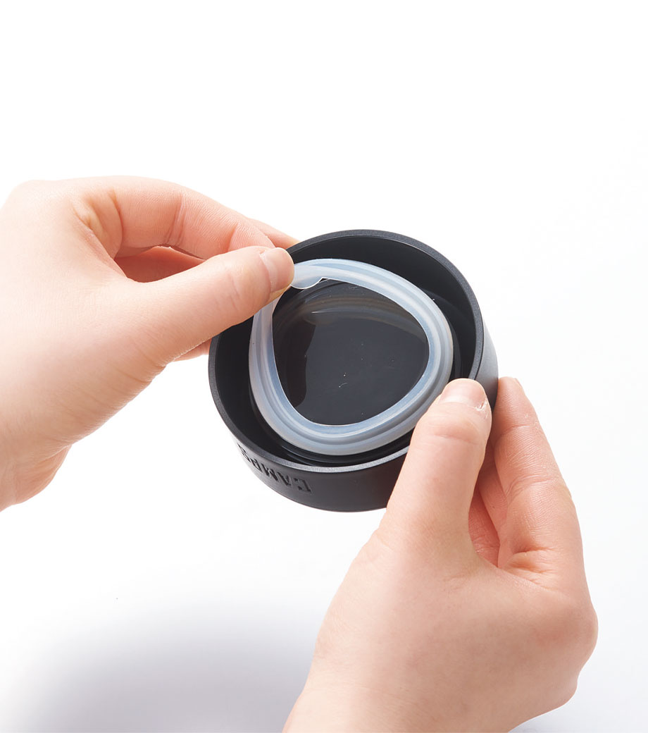 胴部の表面は、滑り止め効果のあるラバー塗装が施されています。手にしっかりフィットしてくれるので、持ちやすく食べるときも安心です。