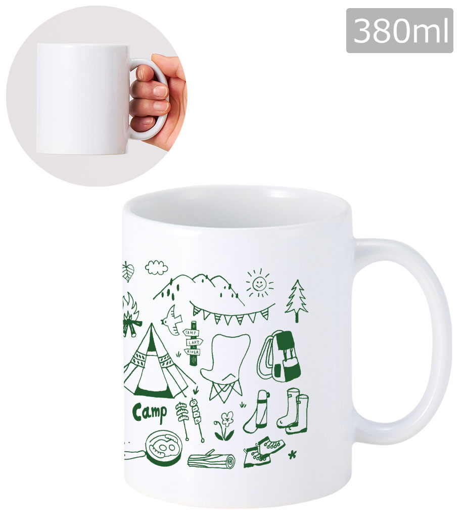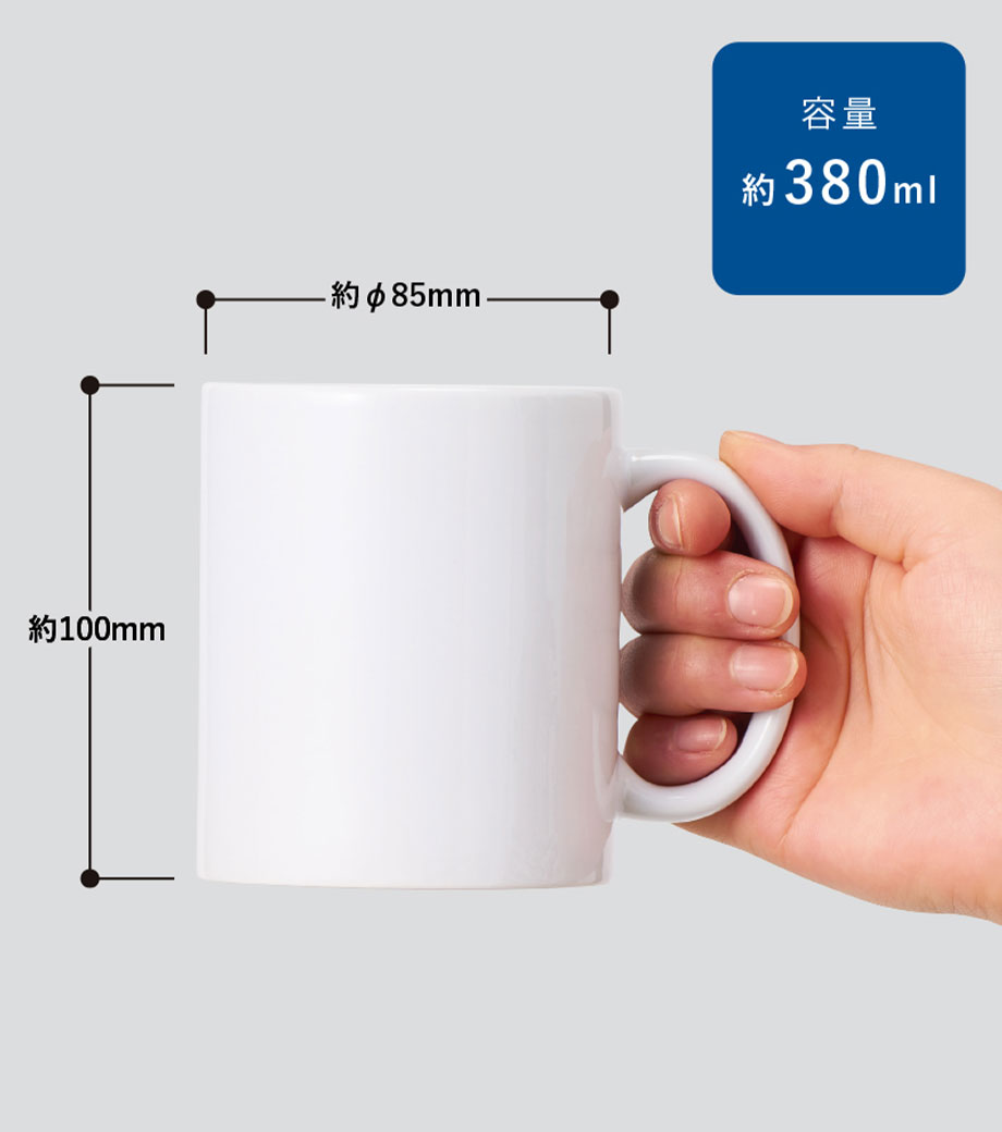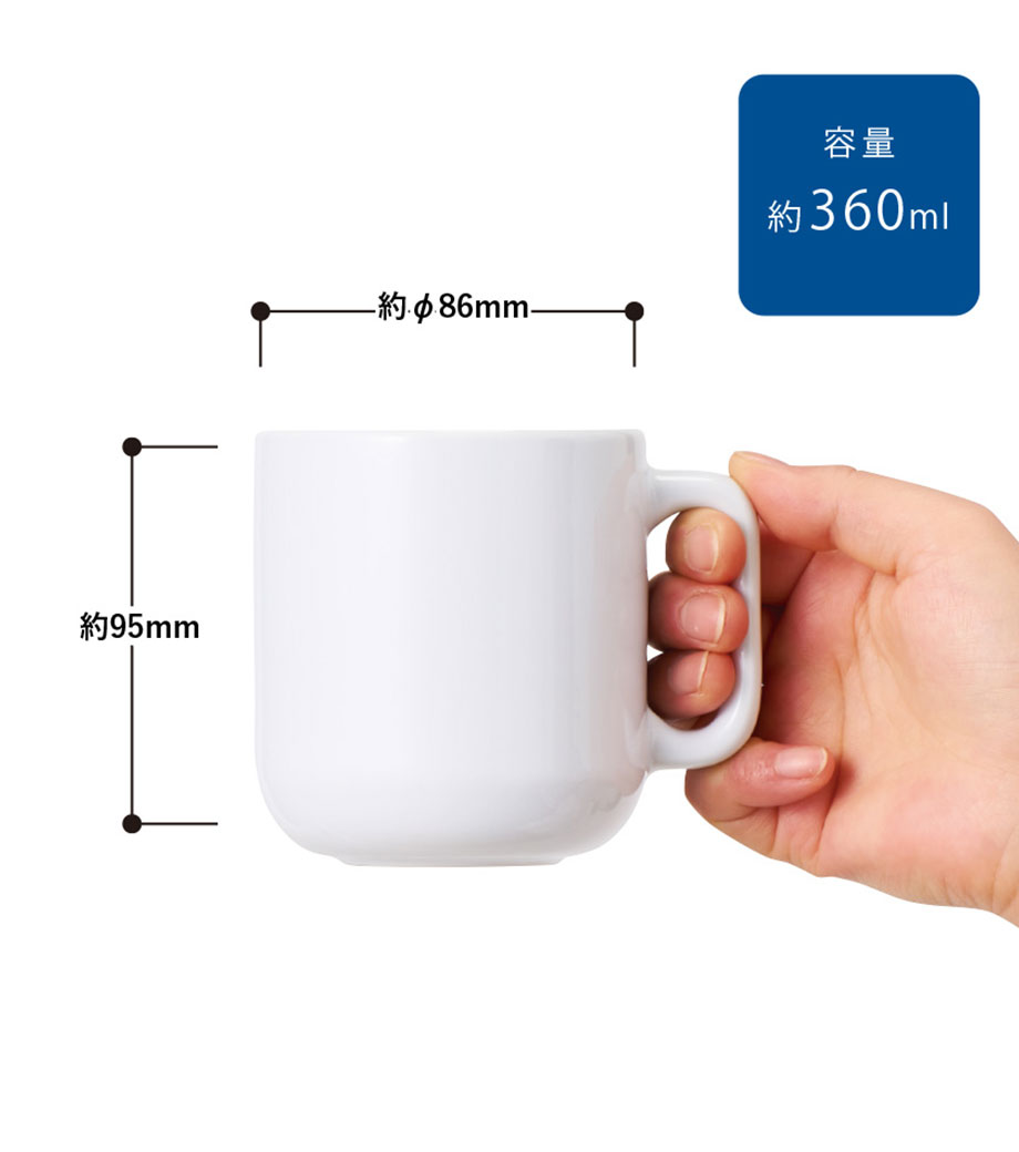 小ロット(30個~)から作れる!写真を印刷した卒業記念品や、イラストを印刷した同人グッズ制作にイチオシの陶器製マグカップ。容量は普段使いに最適な350mlです。