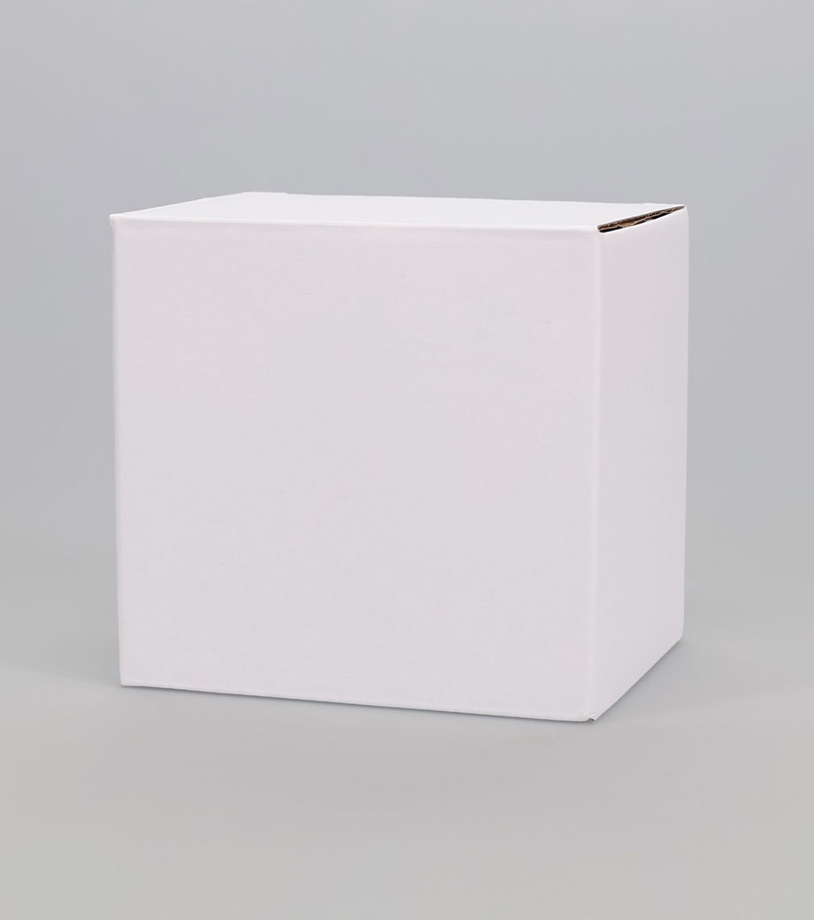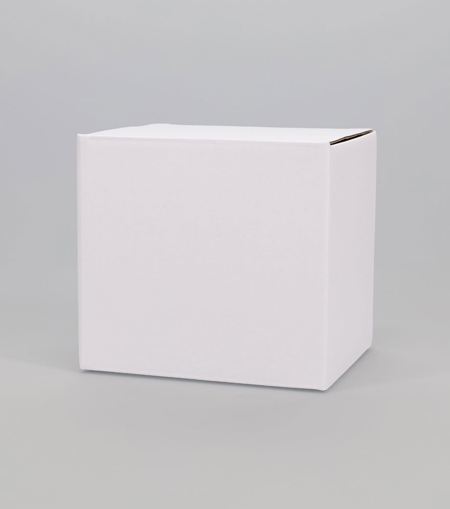 取っ手と飲み口周りが黒でカラーリングされています。モノクロのバイカラーに合わせたデザインで印刷してもおしゃれですよ。物販用にも対応できる白箱入りです。