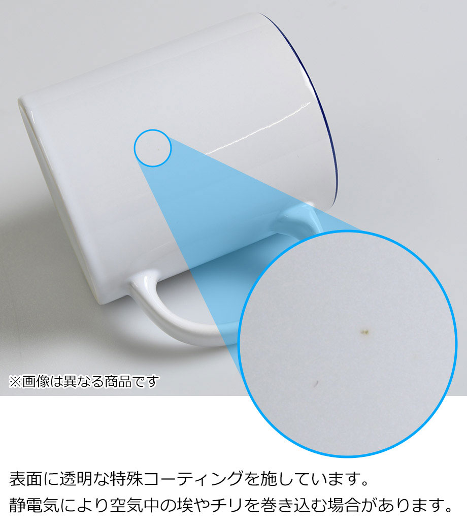 デザインの自由度が高いフルカラー昇華転写印刷に対応!見た目はホーロー、材質は陶器のいいとこどりのマグカップです。写真やイラストをプリントできるので卒園記念品やキャラクター・アーティストグッズ制作におすすめ。レトロ可愛いオリジナルノベルティに仕上がりますよ。